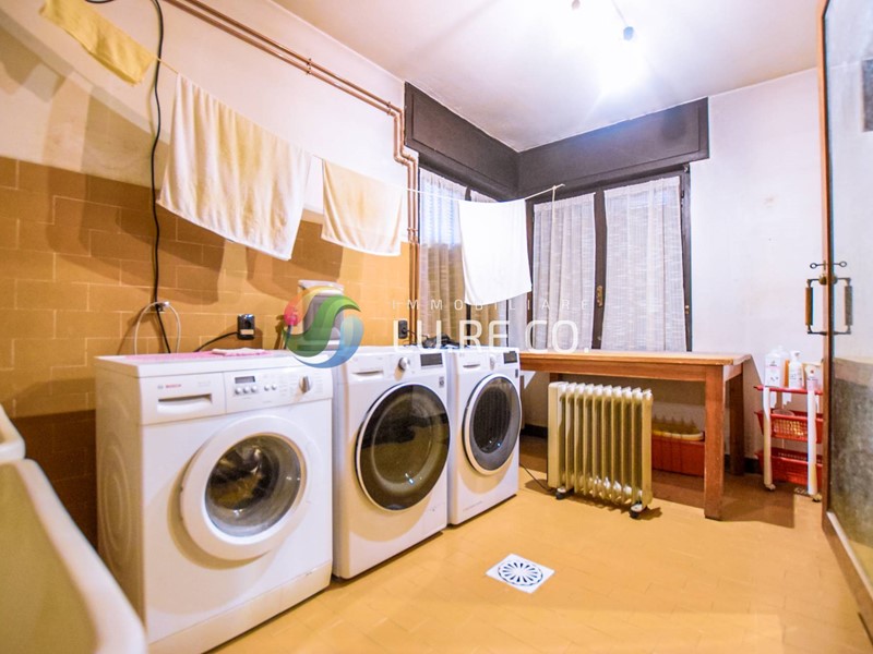 Al piano terra oltre al locale taverna di circa 90 mq con lavanderia, stireria e locale hobby, è presente un garage che offre ricovero per almeno tre auto, oltre alla possibilità di trovare all'esterno spazio anche per un ulteriore posto auto riparato.