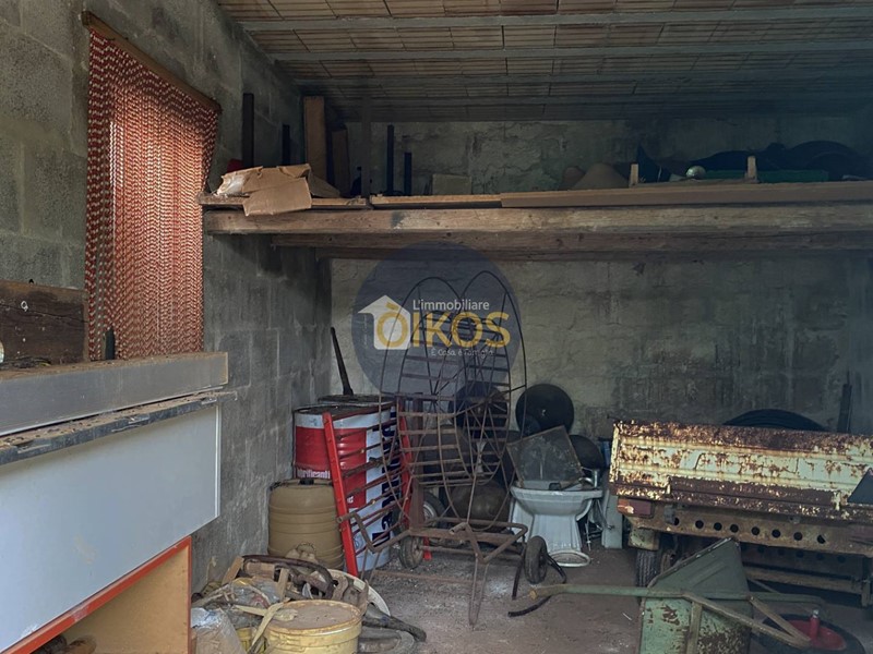 È presente un piccolo viale d' ingresso che divide due lembi di terra rossa portandoci da prima nella zona che accoglie una cisterna di raccolta d'acqua piovana con confinante uno dei depositi con ingresso sul retro, in seguito proseguendo per il viale si giunge al secondo deposito della proprietà (struttura di circa 20 mq).