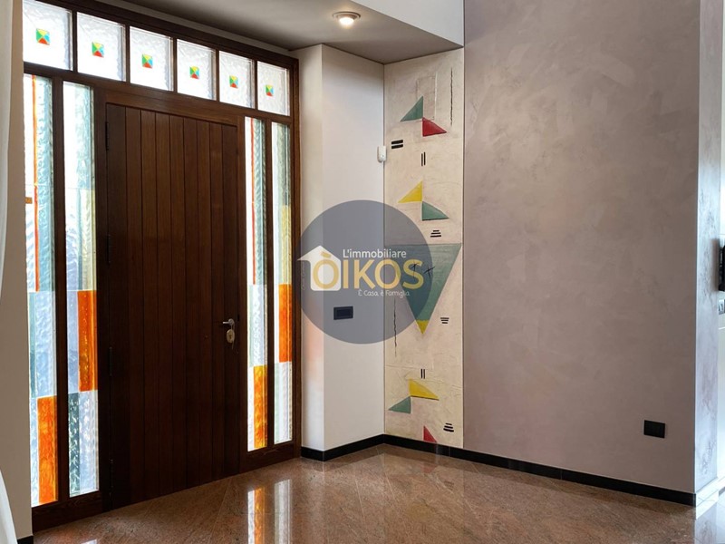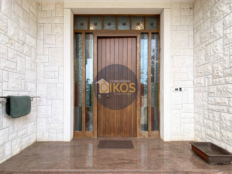 Laccesso dal giardino interamente pavimentato e ben illuminato con una fontana ornamentale ad accoglierci, permette di creare continuità tra indoor e outdoor legando la vita allinterno dellabitazione alla vista sullesterno soprattutto grazie alle numerose vetrate panoramiche che limmobile presenta e agli ingressi secondari.