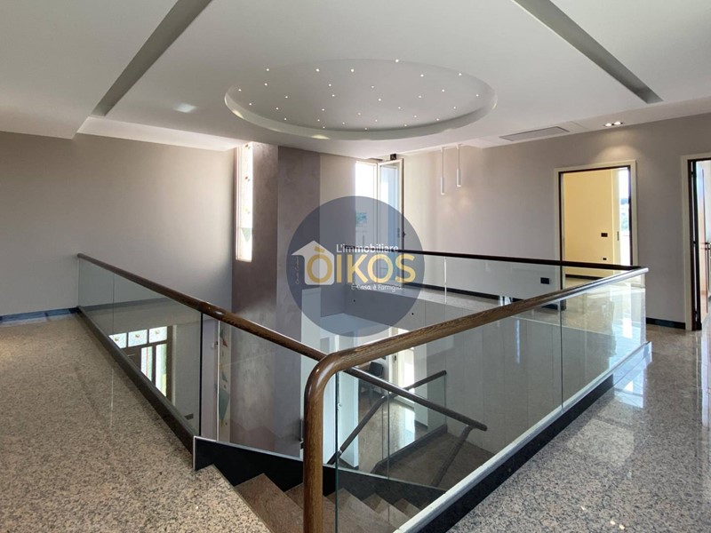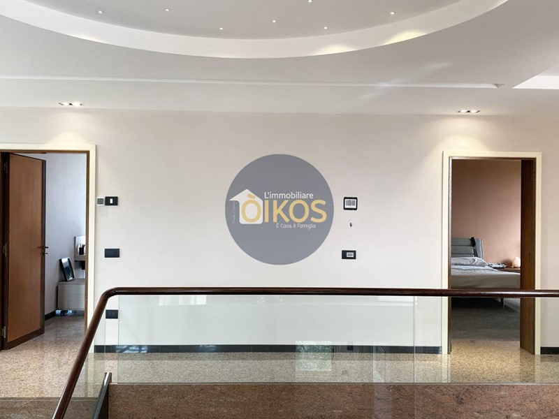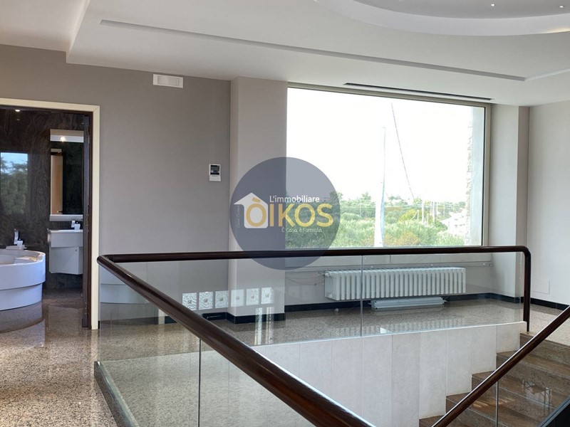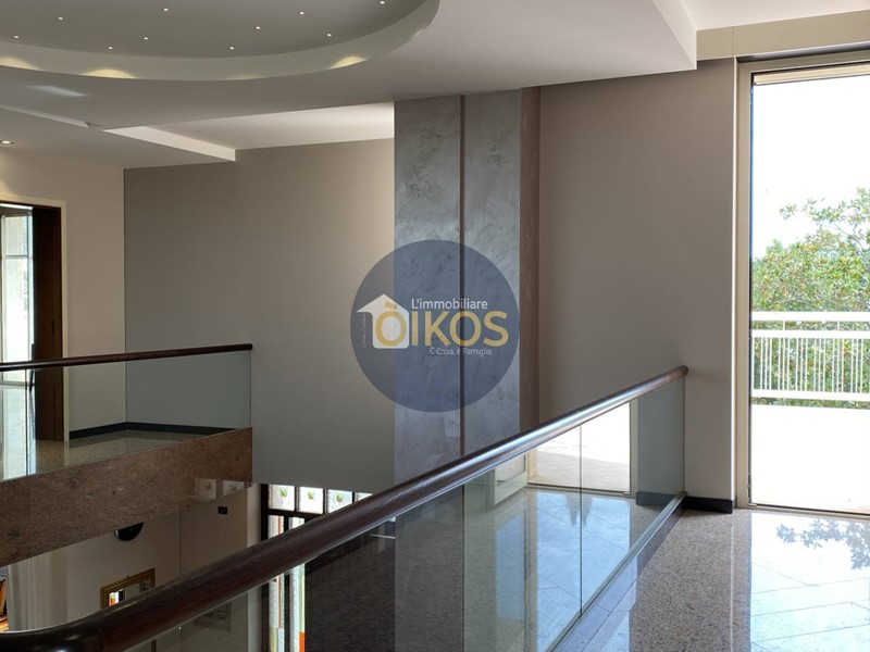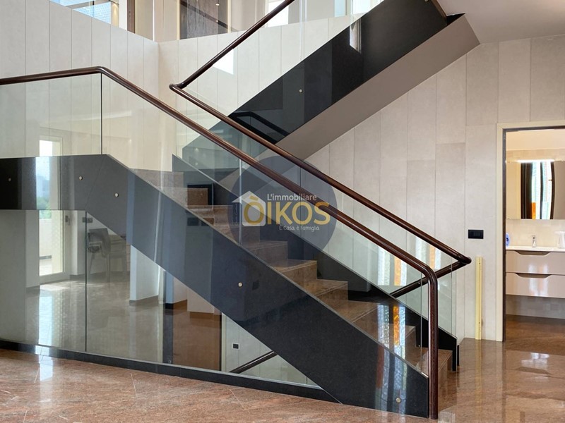La scala, in vetro temperato e passamano in legno ci conduce al piano superiore, la zona notte ampia, spaziosissima, anche qui la vista sugli esterni è incantevole grazie ad una vetrata panoramica che illumina e regala un colpo docchio che non lascia certo indifferenti! Qui le camere da letto sono quattro, saranno le vostre necessità a suggerire il modo migliore per sfruttarle al meglio: sono camere comode con accesso diretto su balconi; anche questo piano vanta la presenza di un bel bagno dalle dimensioni notevoli, ospita infatti una vasca da bagno idromassaggio, un lavabo a due vasche e il dettaglio del soffitto con travi in legno dona allambiente un calore particolare per i vostri momenti di relax!