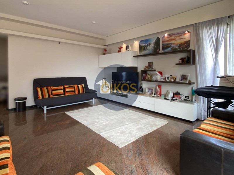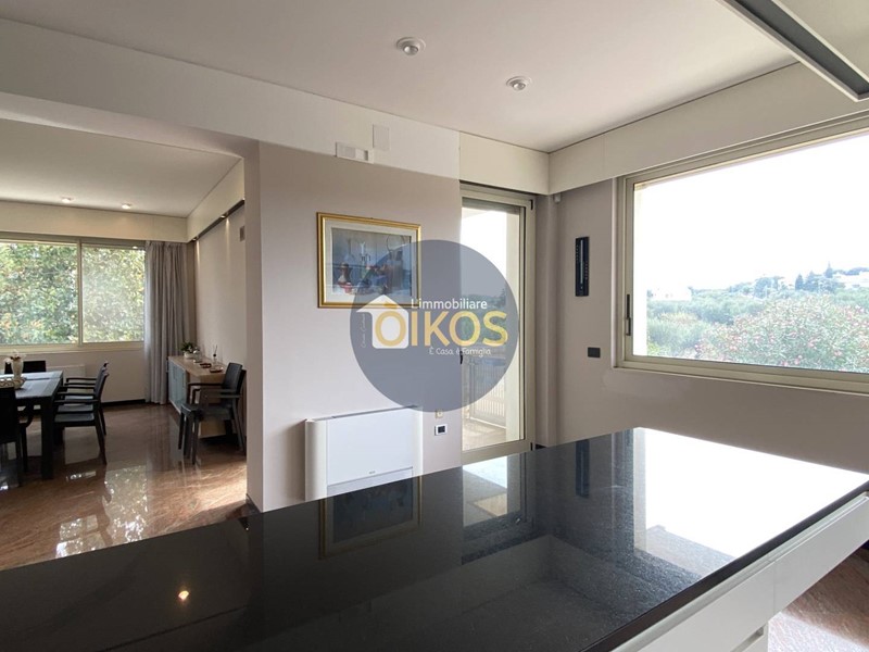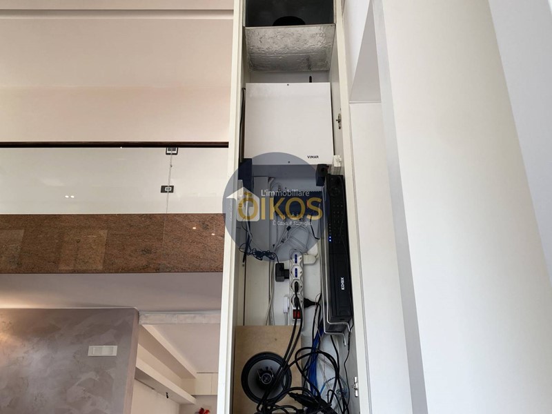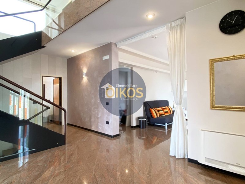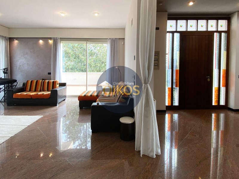 Tutti gli ambienti sono raffinati: elegantissimo il pavimento in marmo persino sulla veranda esterna, vi è un gioco di volumi che si compenetrano sui diversi livelli e sono caratterizzati da colori a contrasto con tonalità neutre rilassanti.