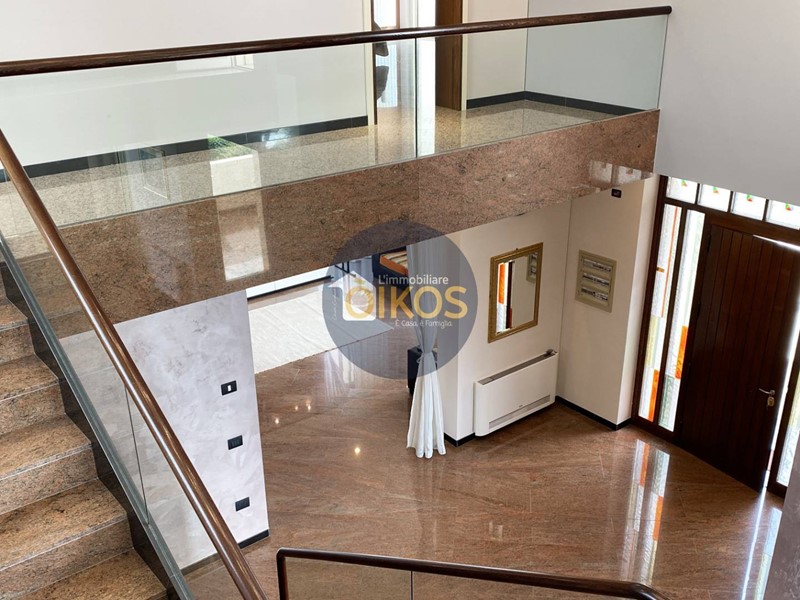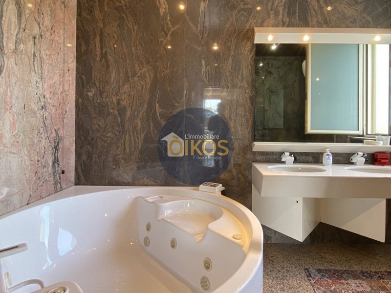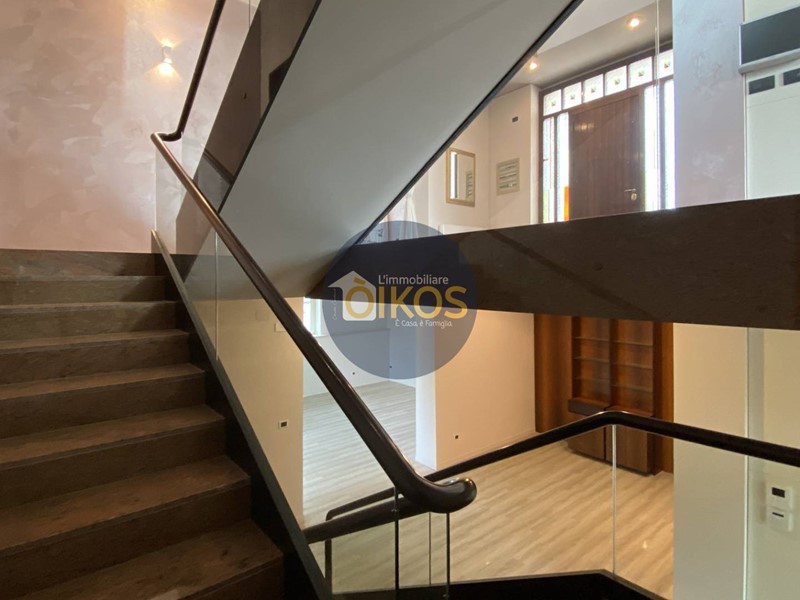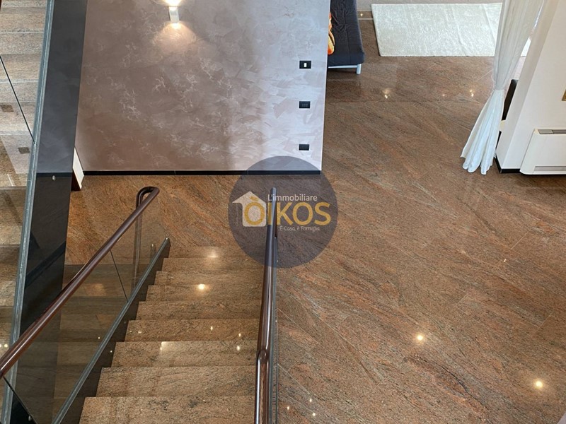 Laccesso da piano rialzato ci porta nel cuore dellabitazione, in quegli ambienti dove tipicamente ruota la vita quotidiana diurna e serale di una famiglia, qui larticolazione e la differenziazione degli spazi è estremamente ricca, la scala di design in tutta la sua maestosità ed eleganza è senza dubbio lelemento scenografico tra piano rialzato, interrato e primo piano, nonché fulcro tra zona giorno e notte: il piano rialzato quindi delimita visivamente la zona living con la cucina arredata e multiaccessoriata, un meraviglioso piano in marmo scuro crea una penisola di classe, per preparazione o consumazione di aperitivi veloci , adiacente una zona pranzo con vista meravigliosa sugli esterni e la possibilità di accesso diretto su veranda da sfruttare tranquillamente nei periodi più miti ; un ampio open-space dal lato opposto baciato dalla luce naturale, cui si aggiunge una camera che potrà essere adibita a studio o stanza della musica ed infine un bagno dagli arredi moderni e completo di tutti i servizi.