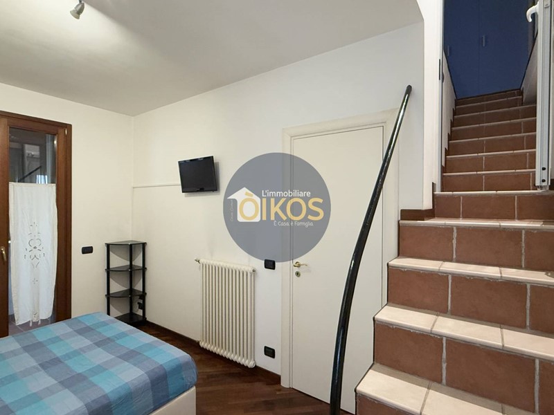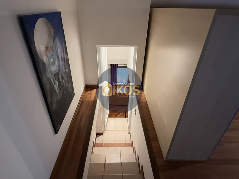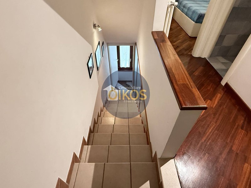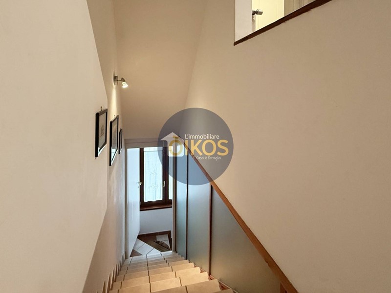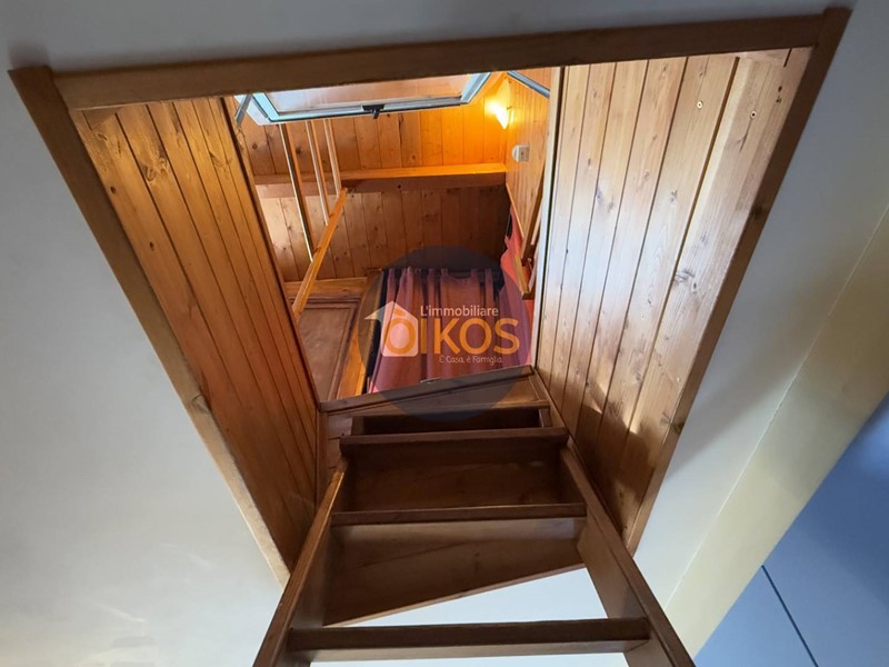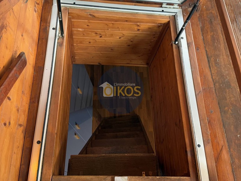 Si suddivide in 3 piani: il primo destinato a zona giorno, il secondo a zona notte, finendo con il sottotetto. La zona giorno si presenta spaziosa e arieggiata, grazie alla porta finestra che affaccia su un balconino, protetto anchesso da una tettoia in legno; è dotata di un comodissimo e discreto bagno di servizio finestrato, su un dislivello della stanza, che separa gradevolmente lambiente.
