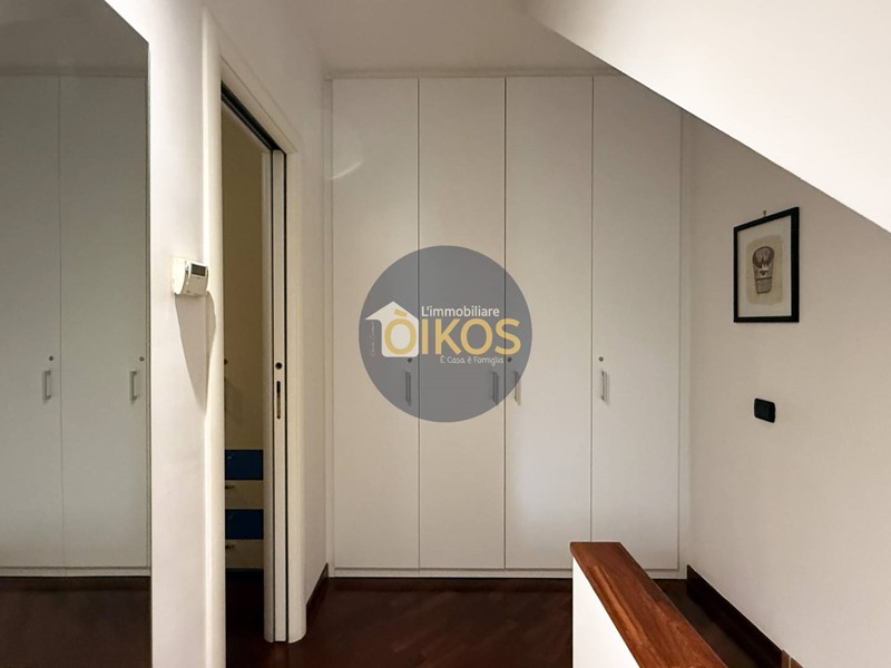 E presente un bagno, con finestra satinata, dotato di sanitari e box doccia angolare. In fondo al disimpegno vi è un utilissimo quasi indispensabile armadio a muro a tuttaltezza, in cui poter riporre capi dabbigliamento e/o oggetti di ogni genere. Unultima rampa conduce infine al vano sottotetto da poter utilizzare come deposito o come zona lavanderia, essendo dotato di allacci idrici e fognari. Di qui, un lucernario vi permetterà di accedere al lastrico solare dove gli attuali proprietari con una struttura in legno, hanno realizzato un vano che a vostra discrezione potrete mantenere anziché no.