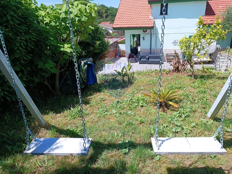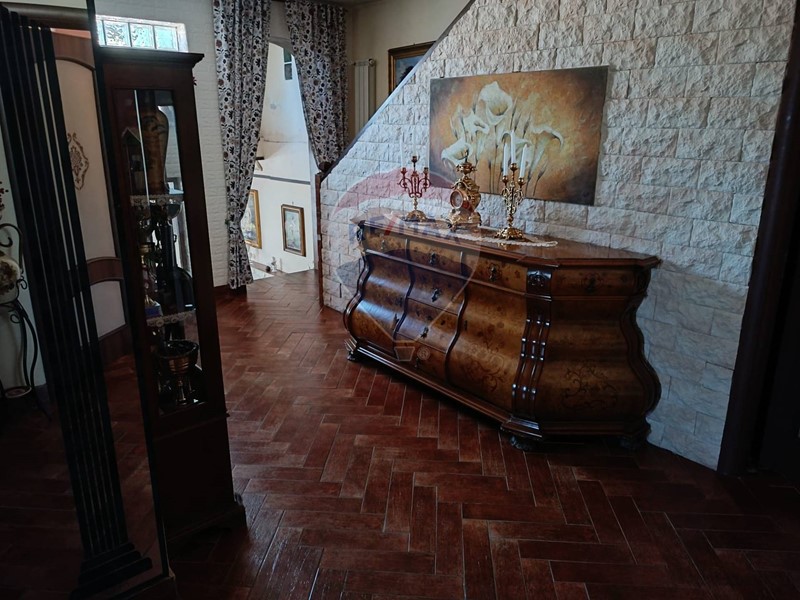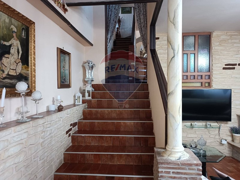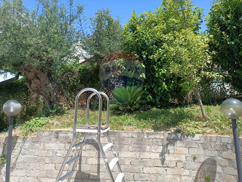 Completano la proprietà un terrazzo ed un ampio spazio pavimentato predisposto per piscina fuori terra, cantina adibita a civile abitazione e giardino di circa 800 mq con alberi da frutto e piante ornamentali.