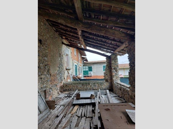Mombello in zona residenziale, porzione di cortile semindipendente su due livelli, da ristrutturare, portico coperto, ripostiglio e box per un totale di circa 200 mq. Piccolo giardino di proprietà.