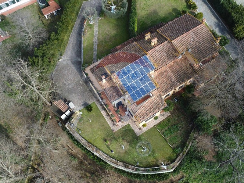 La villa è dotata delle più moderne soluzioni tecnologiche per il massimo del comfort e dell'efficienza energetica, tra cui impianto fotovoltaico da 6 kW con accumulo tramite 15 kW di batterie Tesla, pompa di calore per il riscaldamento e infissi in doppio vetro per un'ottima coibentazione termica. Gli spazi sono inoltre serviti da condizionatori per la climatizzazione estiva, mentre il portico esterno offre uno spazio ideale per momenti di relax allaperto.