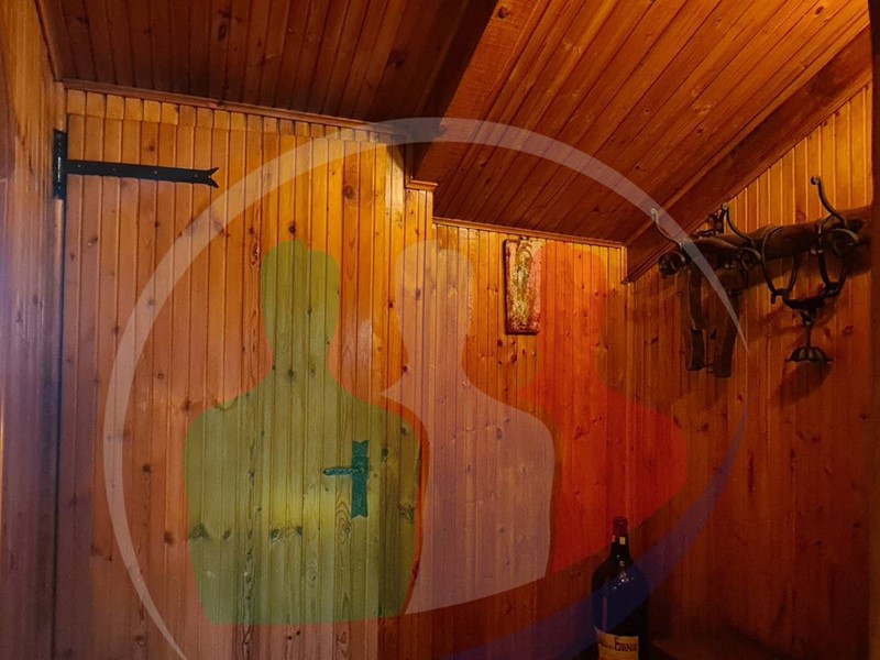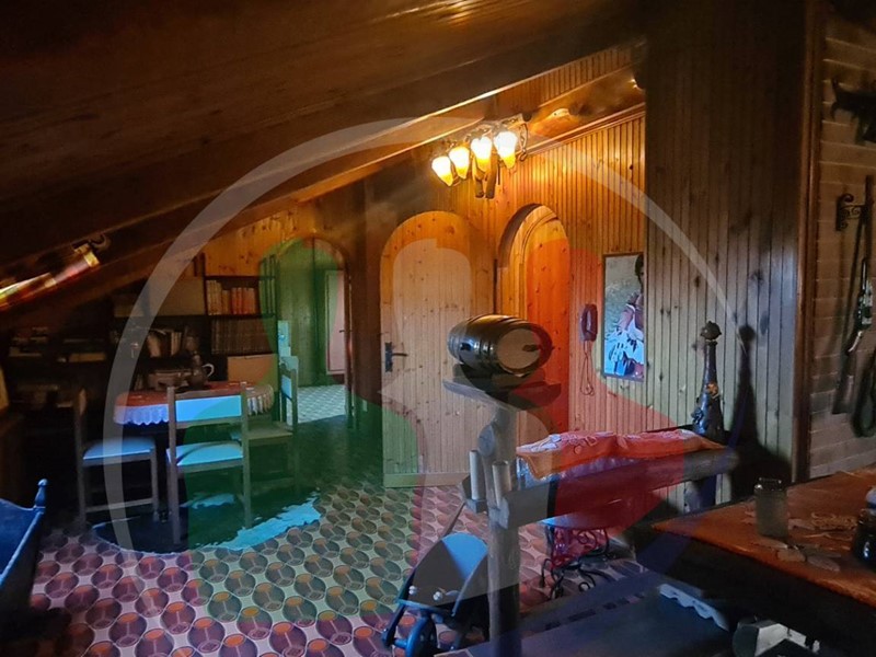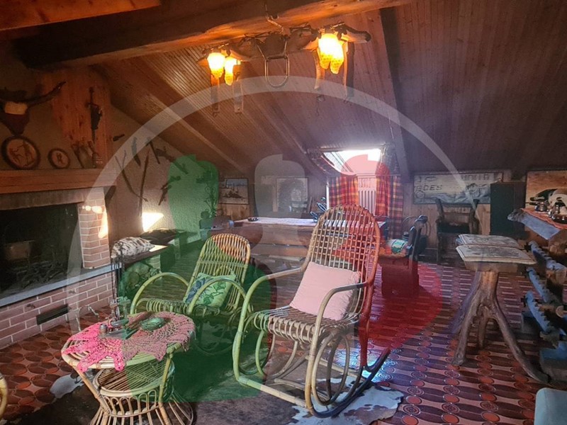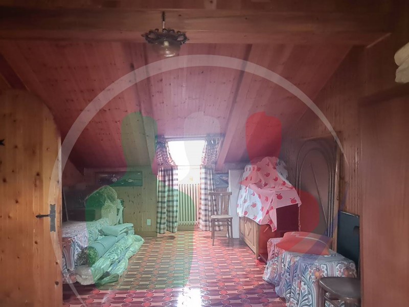 Entrando siamo accolti dal profumo del legno di montagna, con tutto il rivestimento del perlinato che scalda gli ambienti, e con il camino al centro della casa che regala un aspetto accogliente e intimo.