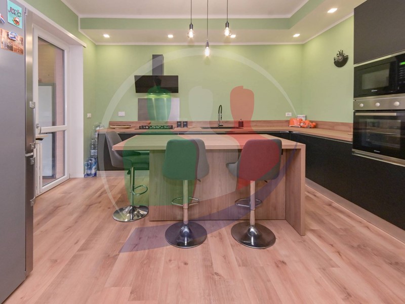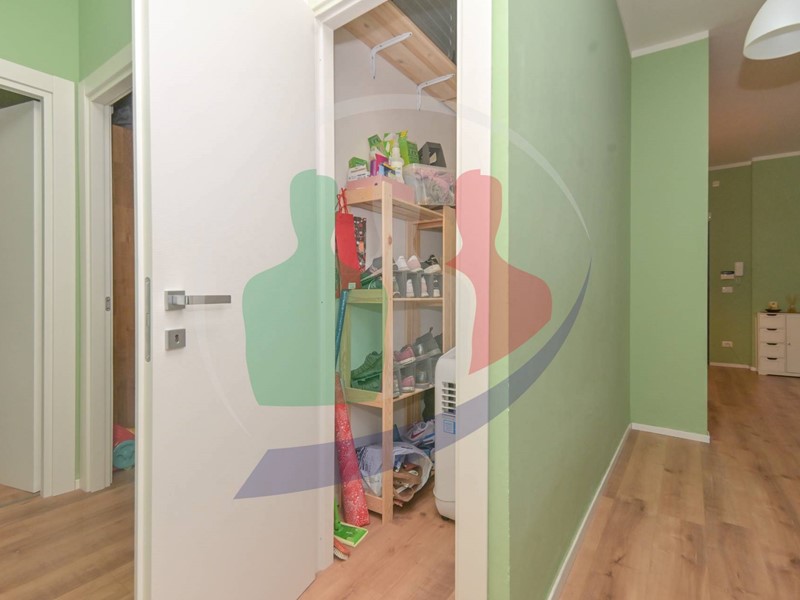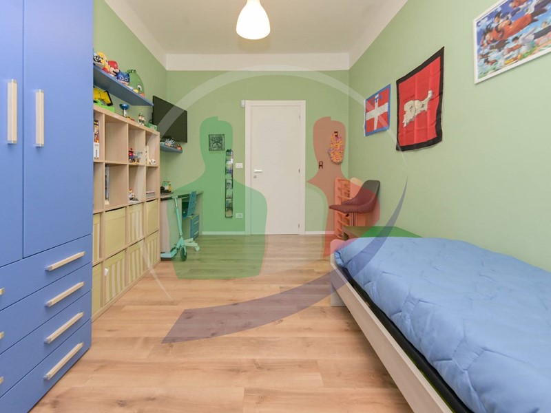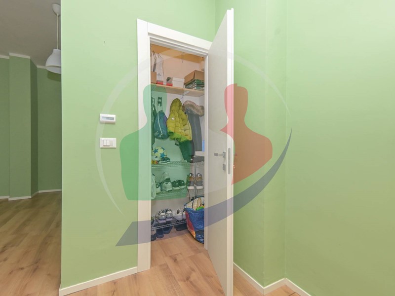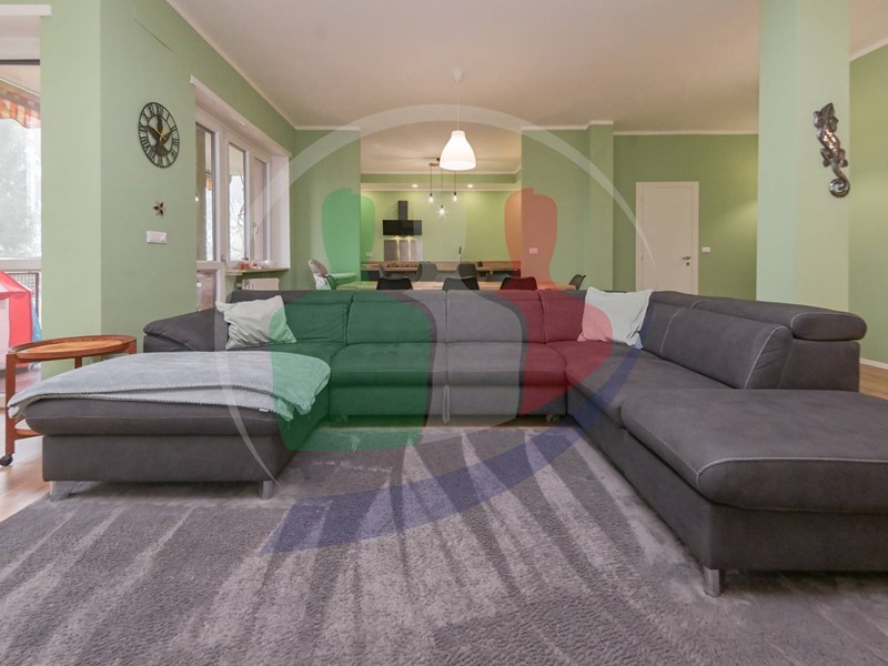 al 1°P: ingresso living su soggiorno con sala da pranzo e cucina a vista, notevole la metratura totale solo della zona giorno di 64 mq. Garantisce un'ottima luminosità le ampie finestre e porte finestre su cui si accede su un terrazzino di 17 mq, dove si possono trascorrere dei bei momenti primaverili ed estivi. L'appartamento predispone di una dispensa, ripostiglio e due bagni di cui il primo con vasca ed il secondo con box doccia a due posti che si accede dalla camera matrimoniale ( tutti e due finestrati), la camera matrimoniale ha un ampio balcone. Le due camere dei ragazzi tutte e due di ampie dimensioni sono collegate da un balcone.