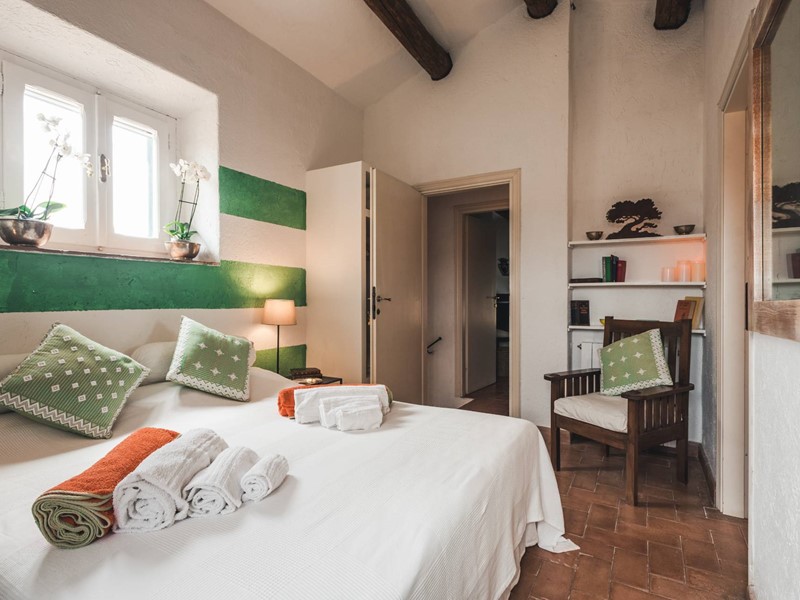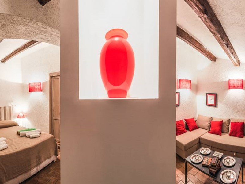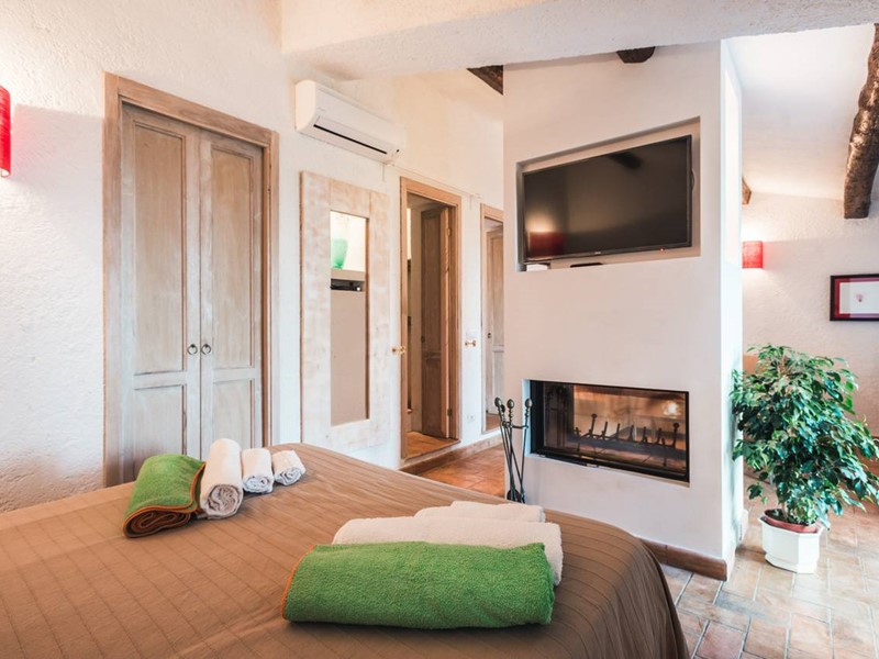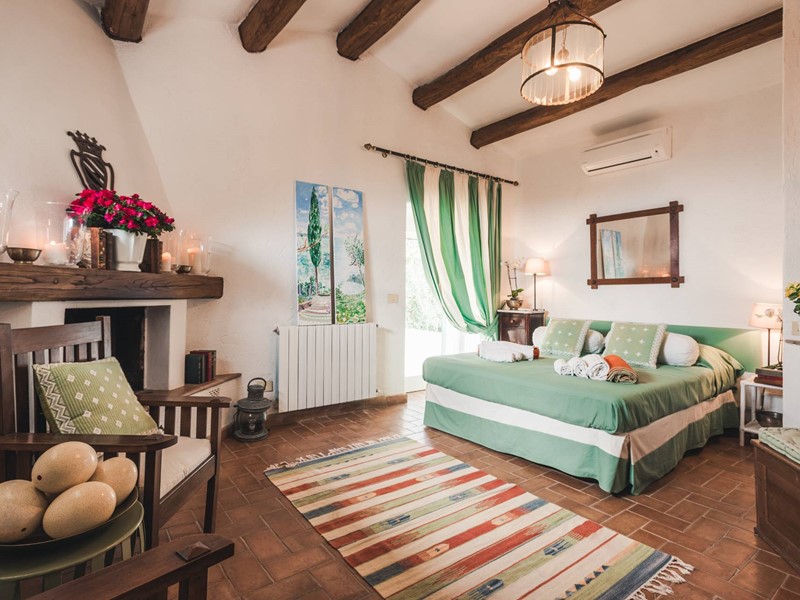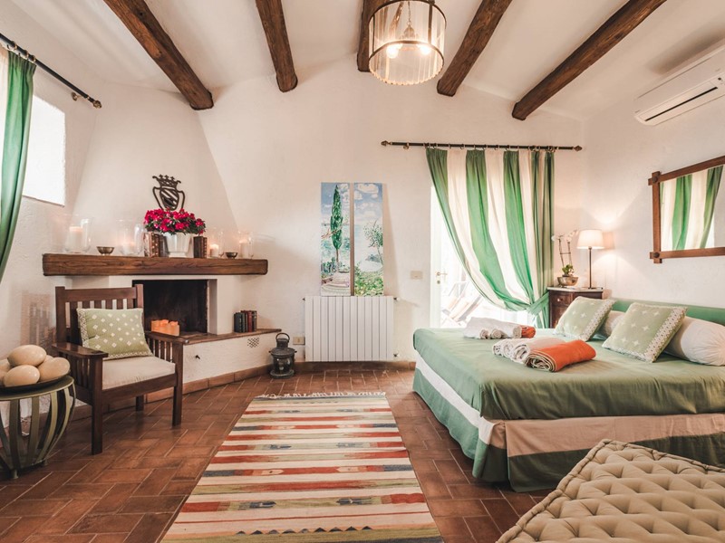 Piccolo casale in pietra e cotto, con un termo camino bifacciale, con apertura sia dalla camera, che dal salotto, incastonato in una parete che divide la zona notte dalla zona giorno. Un bagno doccia in pietra ed una cucina attrezzata, rendono il loft La Sughera completamente indipendente.