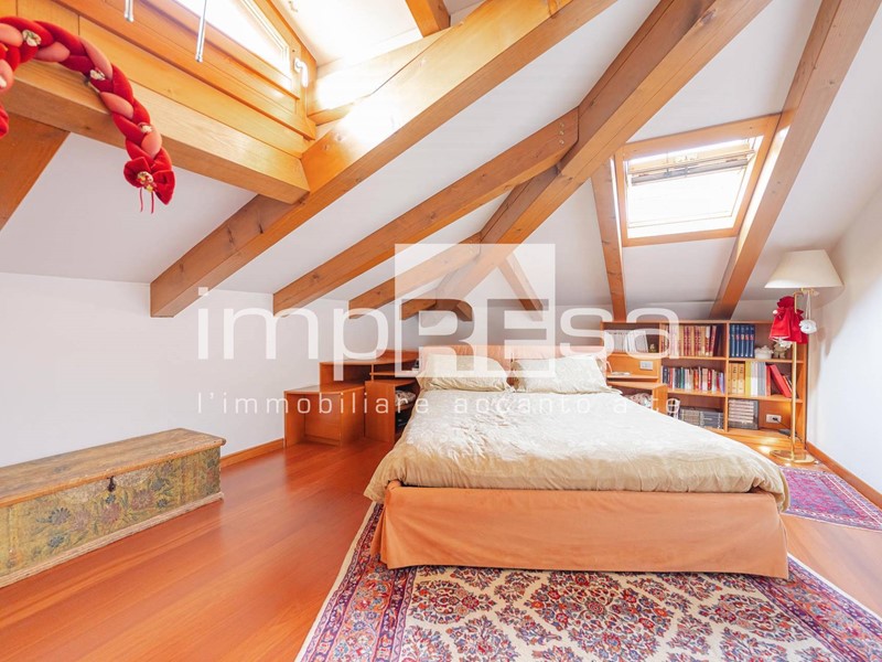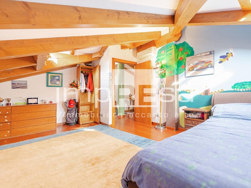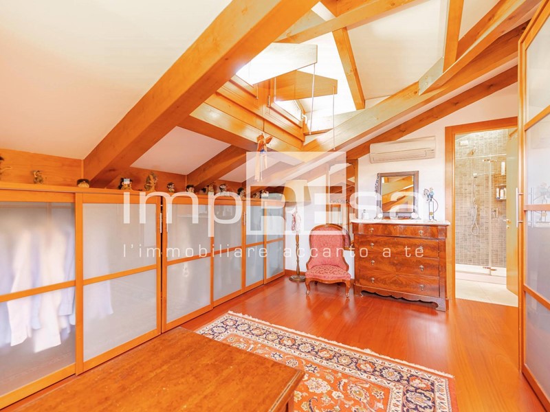 Salendo l'elegante scala accediamo al secondo livello mansardato e travato a vista, dove troviamo due stanze di quasi 30 mq, un bagno con vasca idromassaggio, ed un'altra stanza anch'essa di quasi 30 mq con un bellissimo guardaroba comunicante ed il bagno padronale.