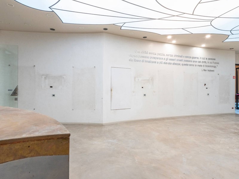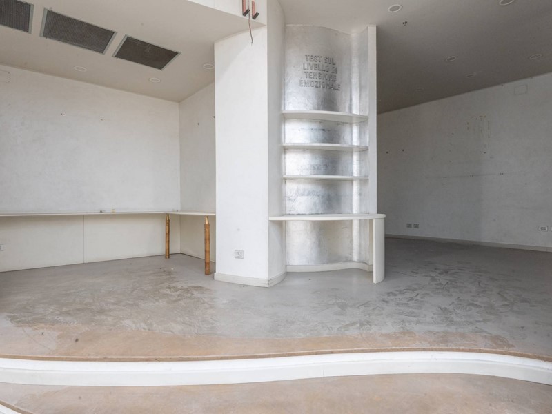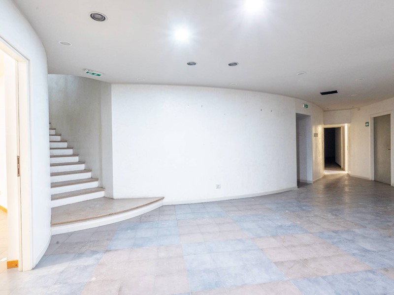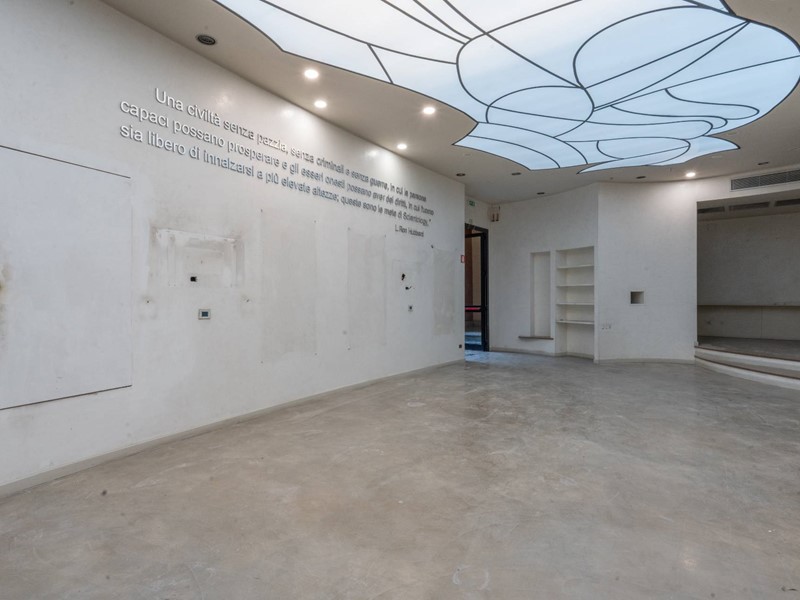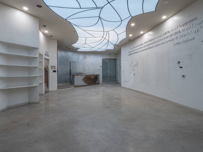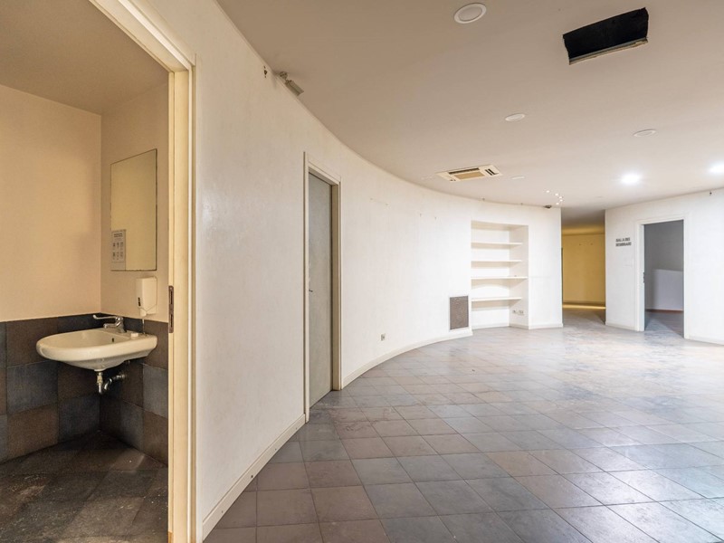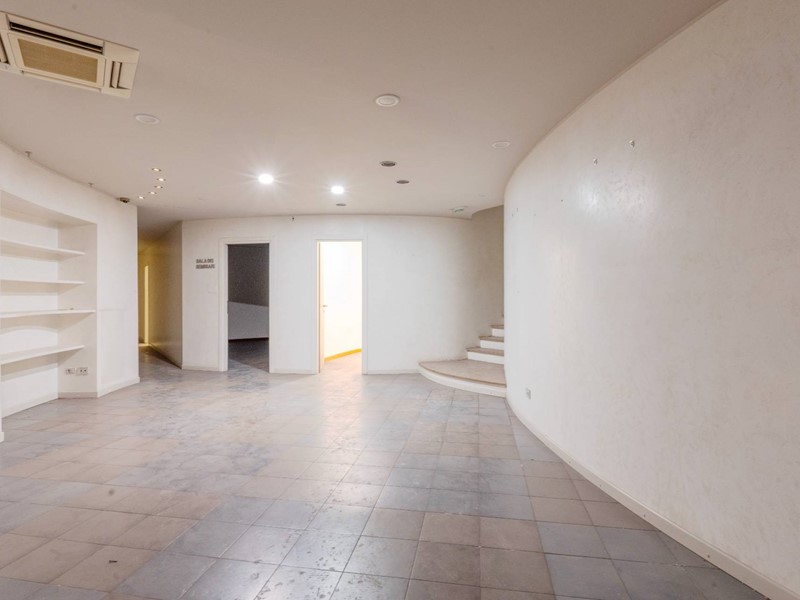 L'immobile, di circa 560 metri quadrati, si trova al piano terra di un edificio costruito nel 1970 e si sviluppa su due livelli