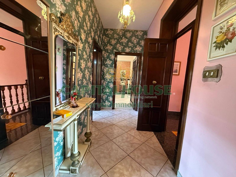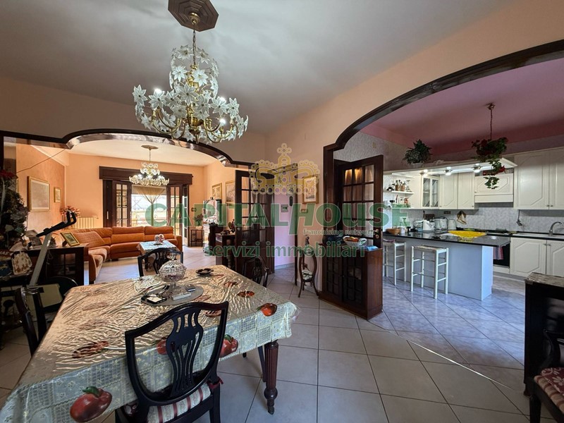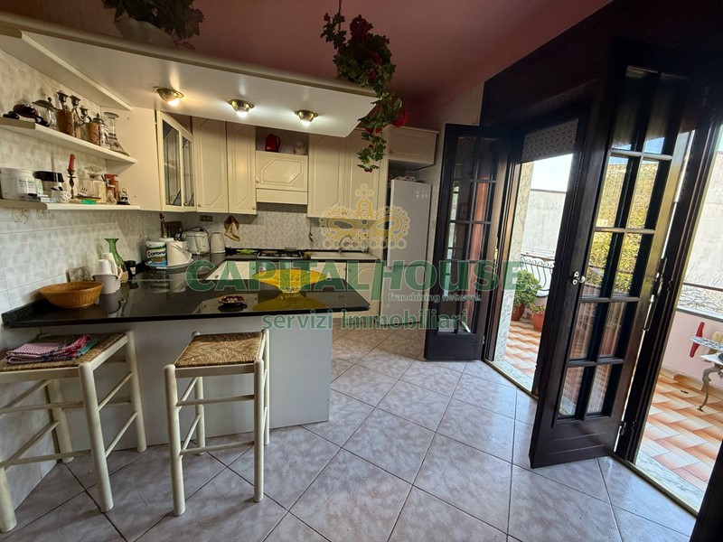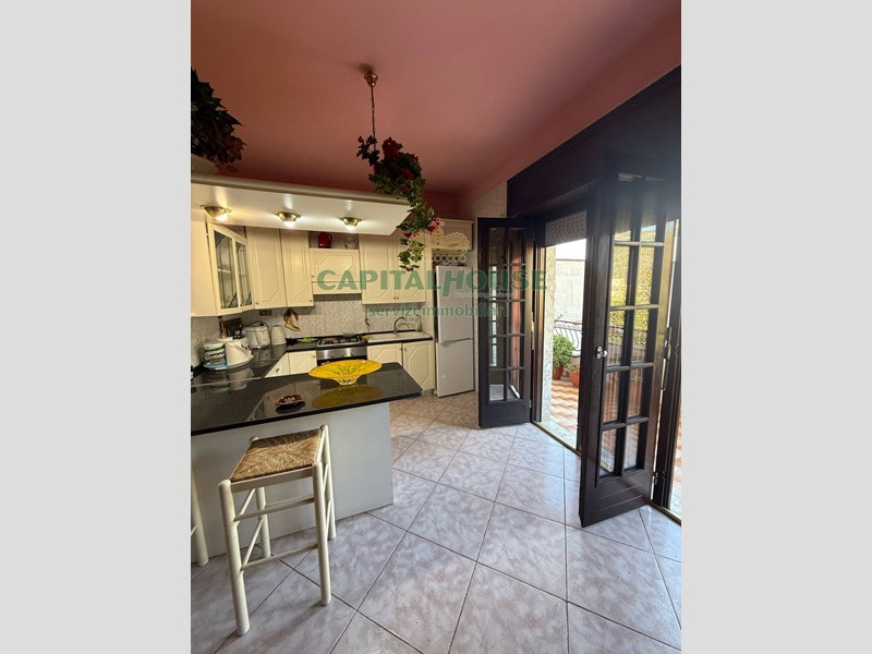 L'appartamento al piano primo, di 130mq, è composto da: ingresso, Cucina a vista su ampio salone living, soggiorno con camino, ideale anche come camera matrimoniale o studio professionale, camera da letto, camera matrimoniale, ripostiglio, e ampio bagno, il quale è stato creato dall'Unione di due bagni;