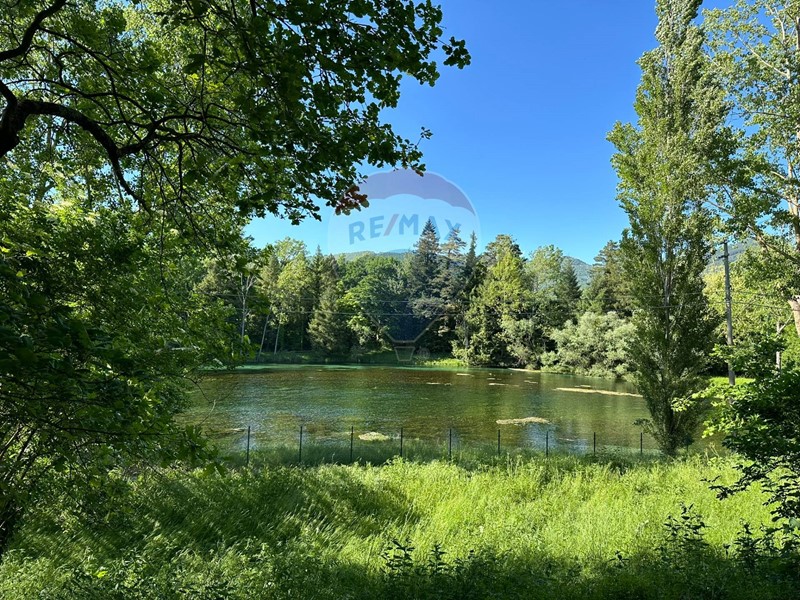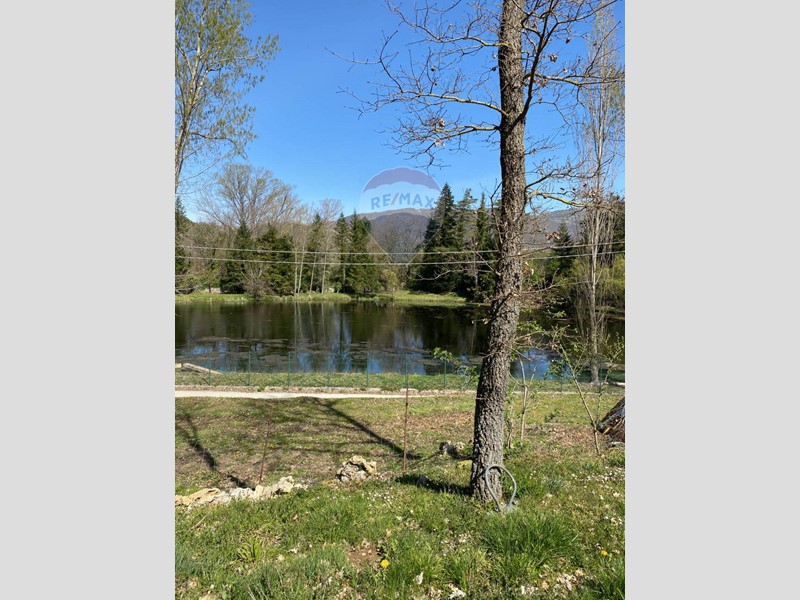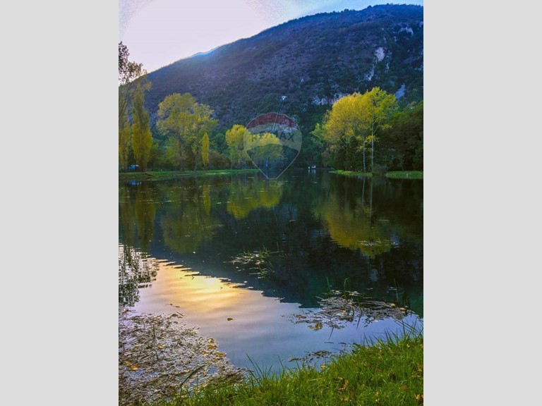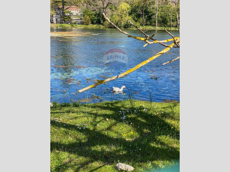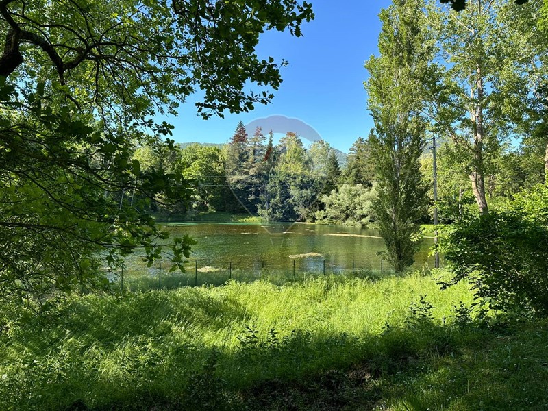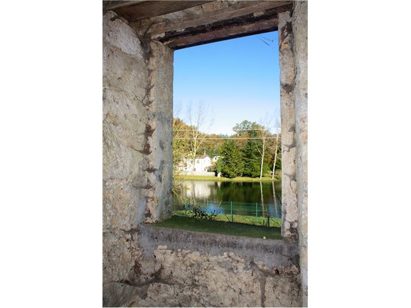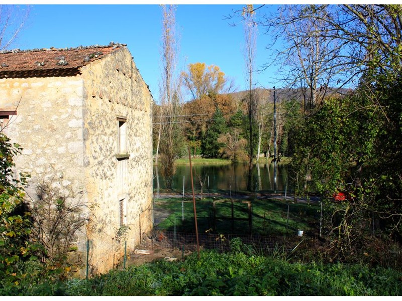 Il Casale, da ristrutturare, completamente in pietra locale è situato nel cuore di questo luogo e affaccia su questo limpido laghetto, godendo di una splendida vista.