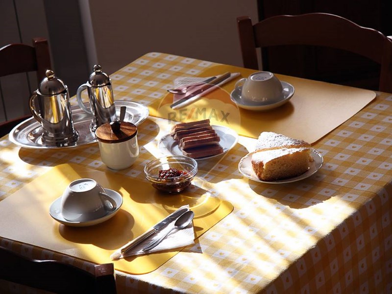 Vano servizi e sala colazioni con bagno. Dispensa.