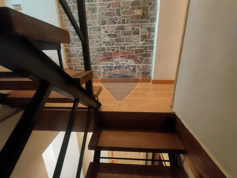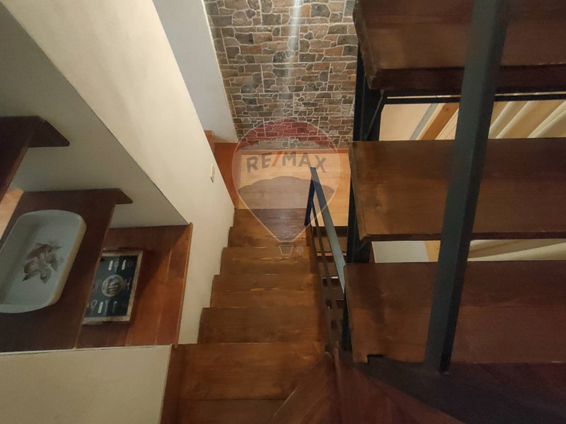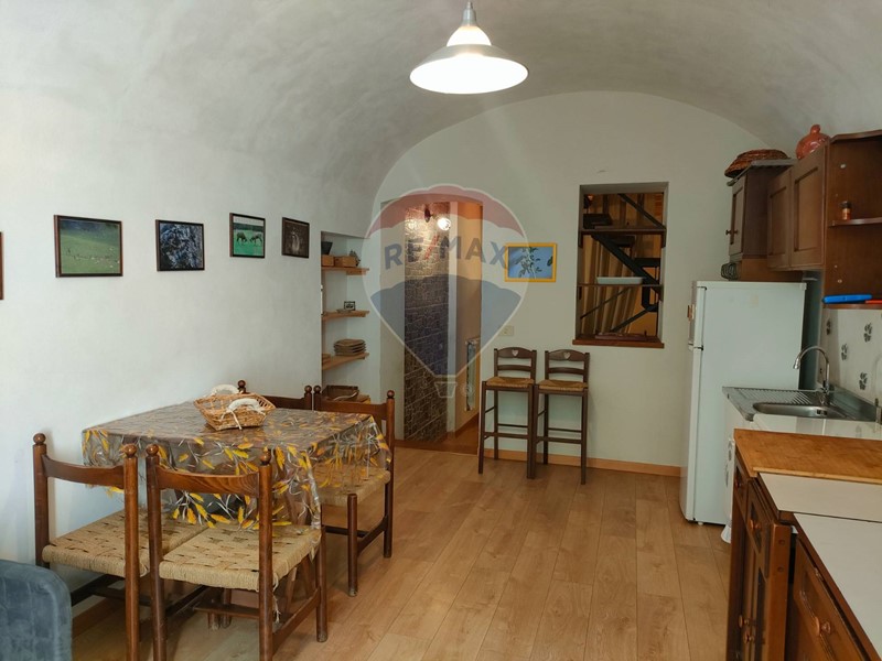Da una bellissima scala in legno si accede al primo piano in un'accogliente e grande cucina abitabile e sempre con il soffitto a volta elemento caratterizzante di questa casa, disimpegno, salottino con divano letto.