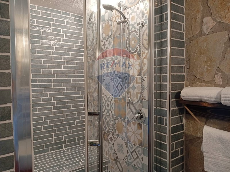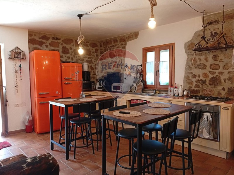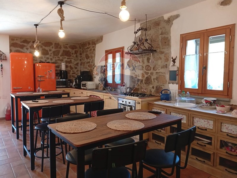 Limmobile, si sviluppa su 3 piani per una superficie totale di 288 mq ed è composto da un ampio e salone con cucina a vista e camino, 5 camere da letto, 4 bagni, rilassante patio/giardino esterno e circa 7000 mq di terreno circostante. I locali sono tutti arredati con gusto e raffinatezza, con volte e pareti in pietra, travi in legno e graziose piastrelle decorate.