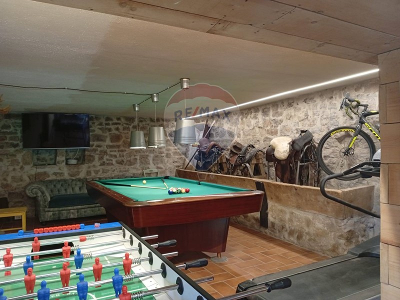 Al piano seminterrato troviamo una spaziosa taverna con una caratteristica e storica ex mangiatoia della preesistente stalla poi completamente ristrutturata, adibito a sala hobbies e ricreativa con biliardo, biliardino ed una sauna dove trascorrere piacevoli serate nel periodo autunnale e invernale.