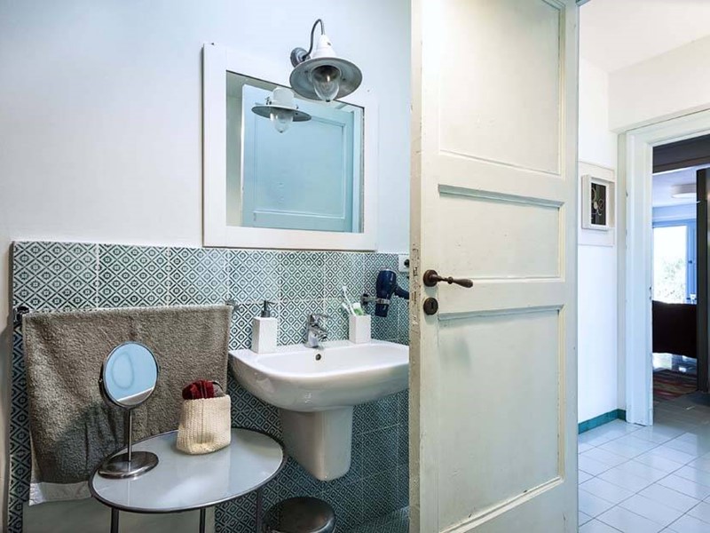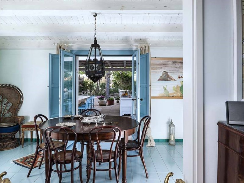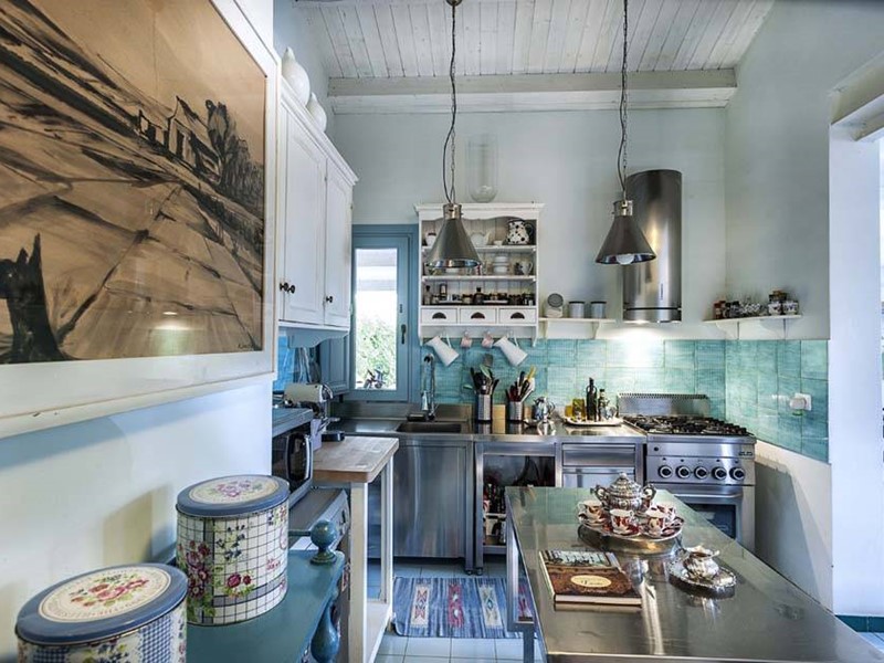 L'ampia cucina, dotata di elettrodomestici moderni e funzionali, invita a sperimentare la cucina locale e preparare prelibatezze da gustare sotto il pergolato con vista mare.