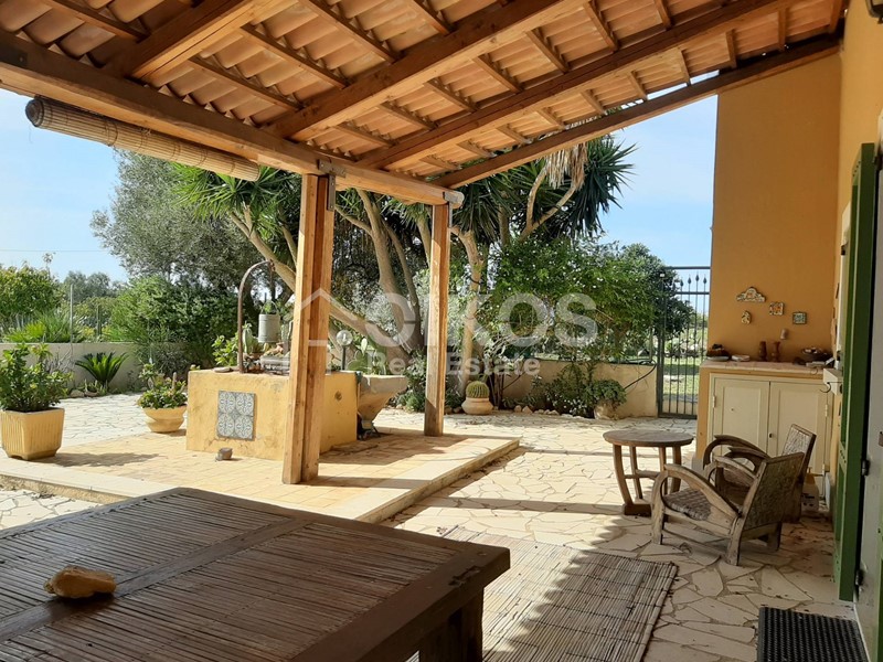 La villetta è caratterizzata da una spaziosa veranda coperta, ideale per pranzi e cene allaperto in ogni stagione, godendo della brezza naturale e del panorama circostante.