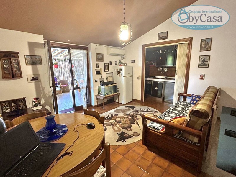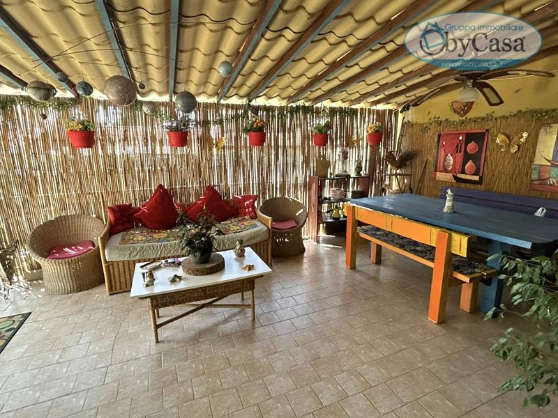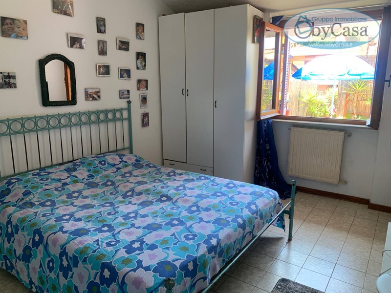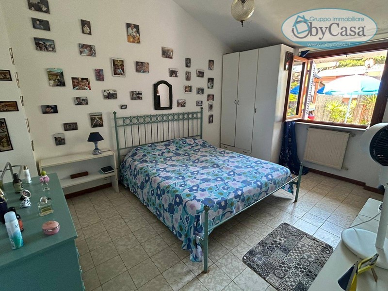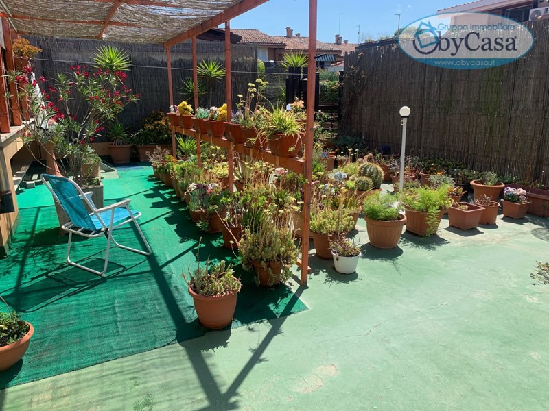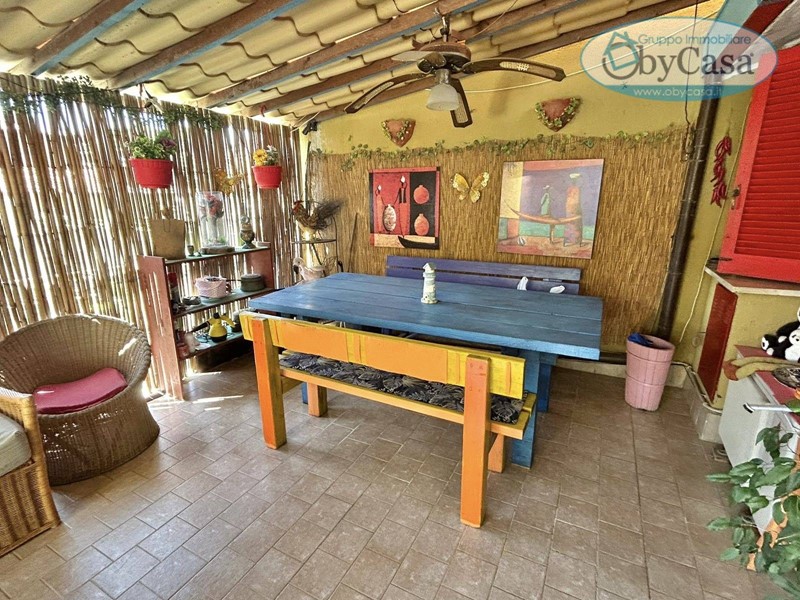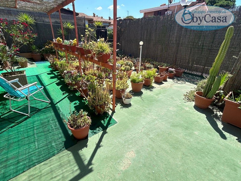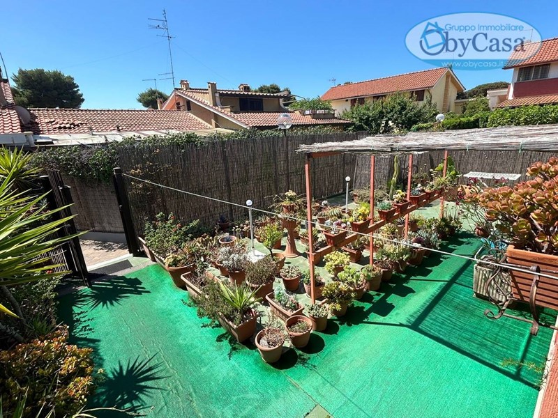 Ladispoli, all'interno del noto Consorzio "Marina di San Nicola", vicino alla postazione riservata alla sicurezza e ai principali servizi quali bar, alimentari, farmacia, ristoranti e adiacente alla fermata della navetta di trasporto che passa ogni ora circa diretta sia per la spiaggia che per Ladispoli, ObyCasa Marina di San Nicola propone in vendita Villa a schiera in un contesto silenzioso e residenzale, dotata di giardino e così composta: Ingresso, soggiorno, cucinotto, disimpegno, camera matrimoniale e bagno (Al piano terra); Ampio e luminoso soggiorno con camino, camera da letto, bagno e ripostiglio (al piano seminterrato). L'immobile gode di un'ottima esposizione e si trova in buono stato di mantenimento. Il giardino esterno è pavimentato ed è presente un portico di 50 mq circa, ideale per sfruttare al meglio gli spazi esterni nei mesi estivi.