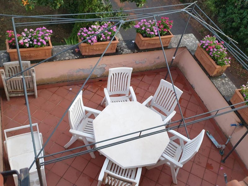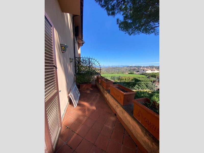 All'esterno, un ampio balcone regala suggestivi scorci sul verde circostante, offrendoti un vero e proprio rifugio di relax dove goderti il panorama e la quiete.