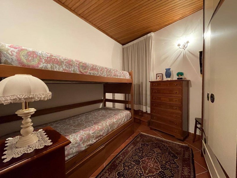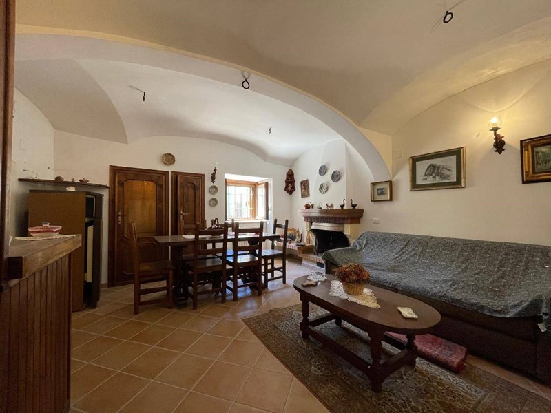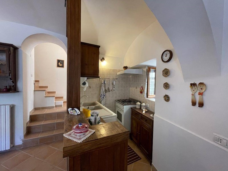 Al piano terra veniamo accolti da un comodo ingresso che ci conduce ad un'ampia zona giorno con cucina a vista corredata da camino e caratteristiche volte a crociera; una comoda scala ci conduce al piano superiore dove troviamo una camera da letto matrimoniale con balcone da cui si gode di una splendida vista sulle montagne, una cameretta ed il bagno.