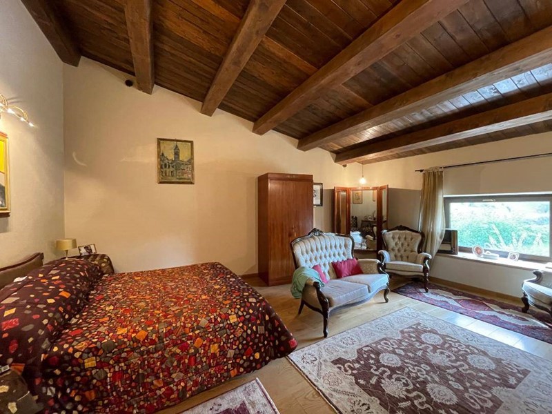 Una comoda scala in legno e ferro ci conduce al primo piano dove troviamo un'ampia camera matrimoniale con parquet e tetto a legno a vista e bagno con doccia.