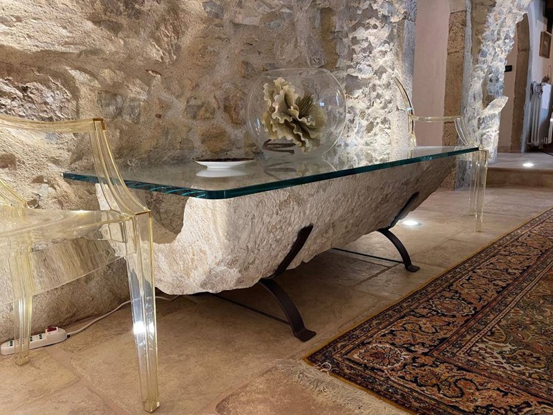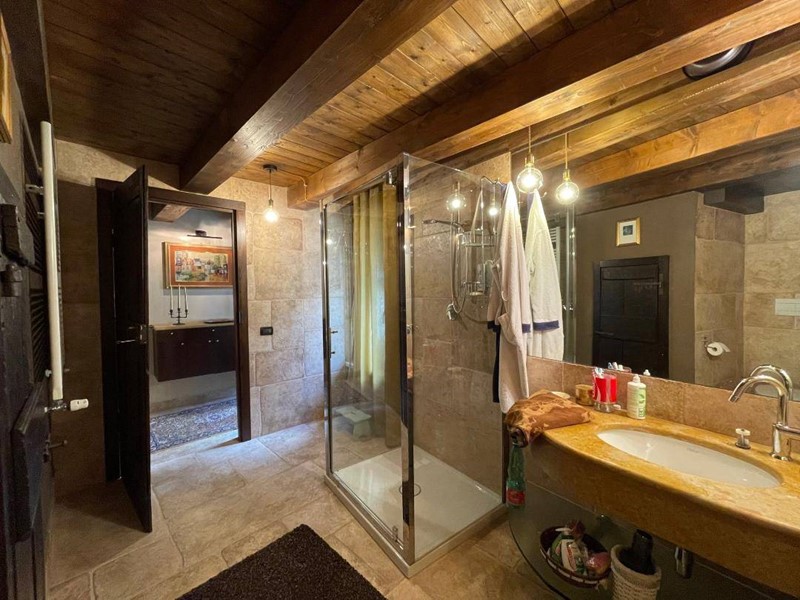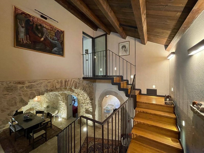Al piano terra veniamo accolti da un'ampia sala da pranzo con volta in pietra medievale, soggiorno con camino in pietra , cucina abitabile con tetto in legno a vista, camera matrimoniale e bagno, il tutto rifinito con pavimento in pietra.