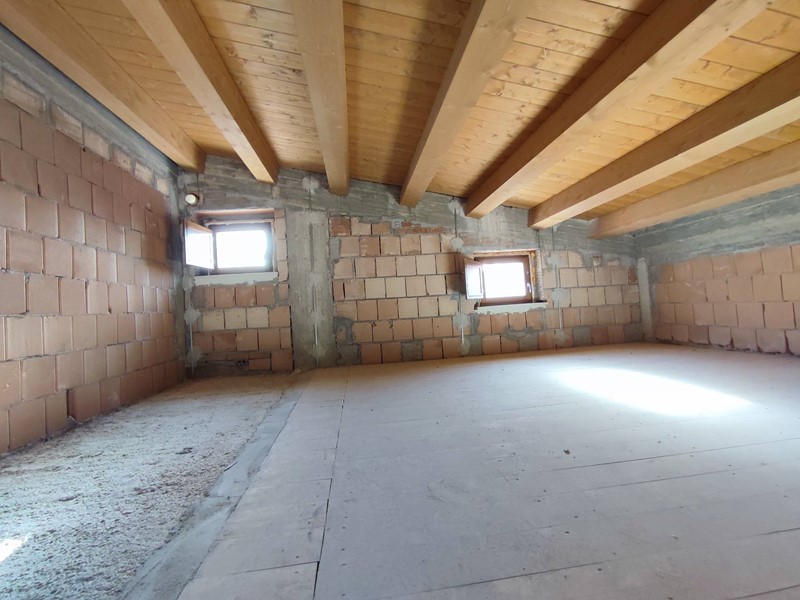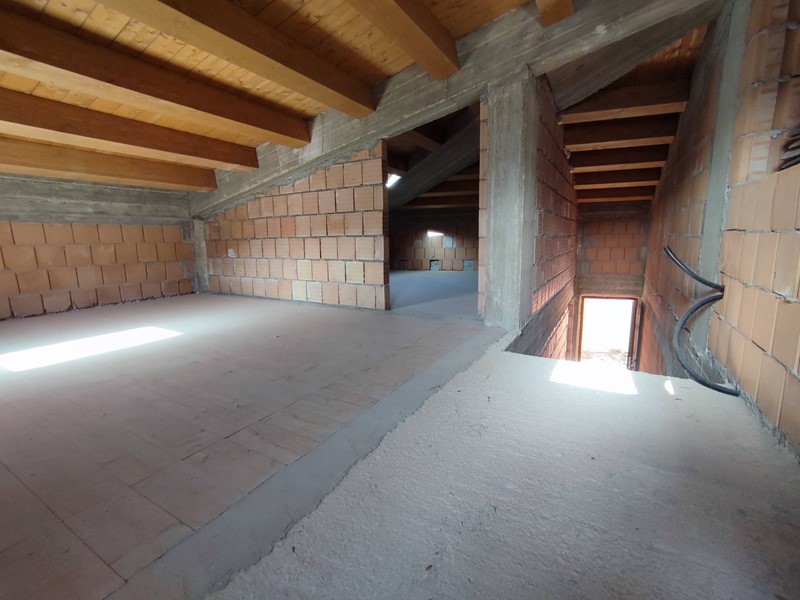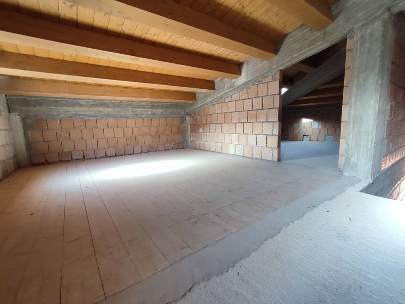 Al secondo piano troviamo una mansarda di 55 mq ca, con ingresso indipendente, predisposta di allacci per angolo cottura, e due camere.