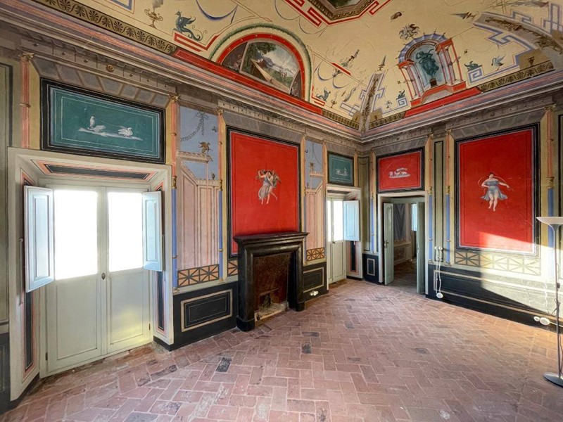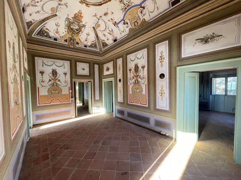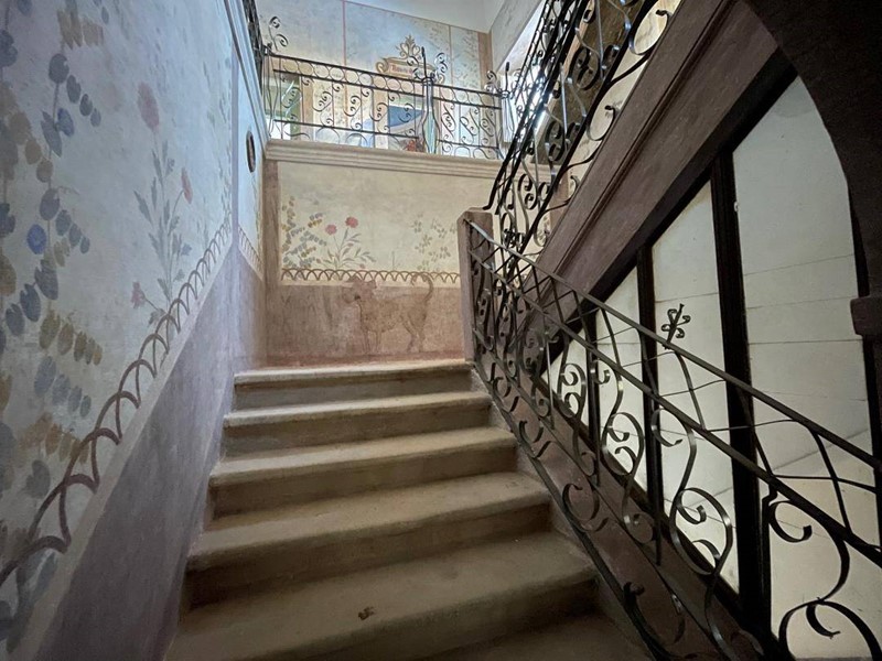La peculiarità del palazzo è rappresentata dagli ambienti al secondo piano, completamente decorati a tempera sia sulle pareti perimetrali che sullintradosso delle volte.