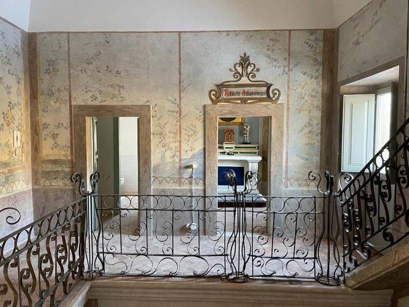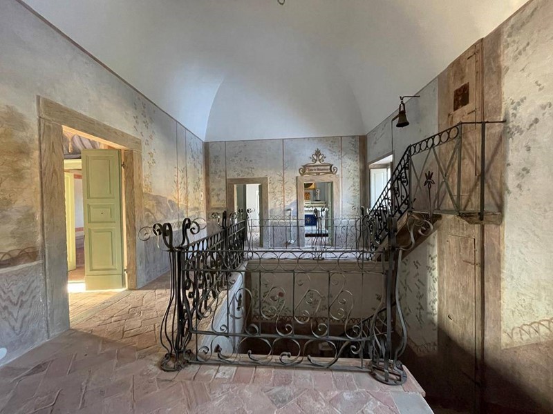 L'edificio, è stato sapientemente ristrutturato mantenendo intatte le caratteristiche originali quali affreschi, pavimenti originali in cotto con il sottofondo in sabbia/terra e calce, intonaci originali, infissi lignei ed elementi metallici ringhiere in ferro battuto, lampadari in ottone e scalinata in pietra arenaria.