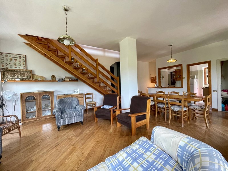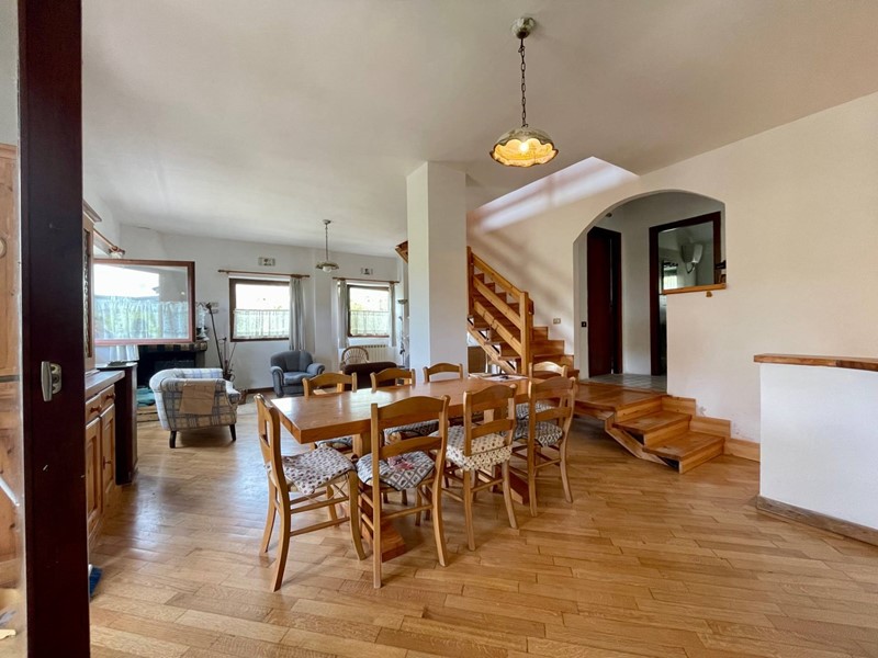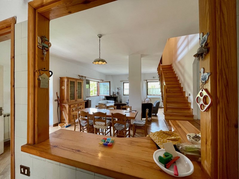 Al piano terra veniamo accolti da ampia zona giorno con camino servita da balcone, cucina a vista, due camere matrimoniali e bagno.