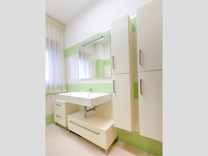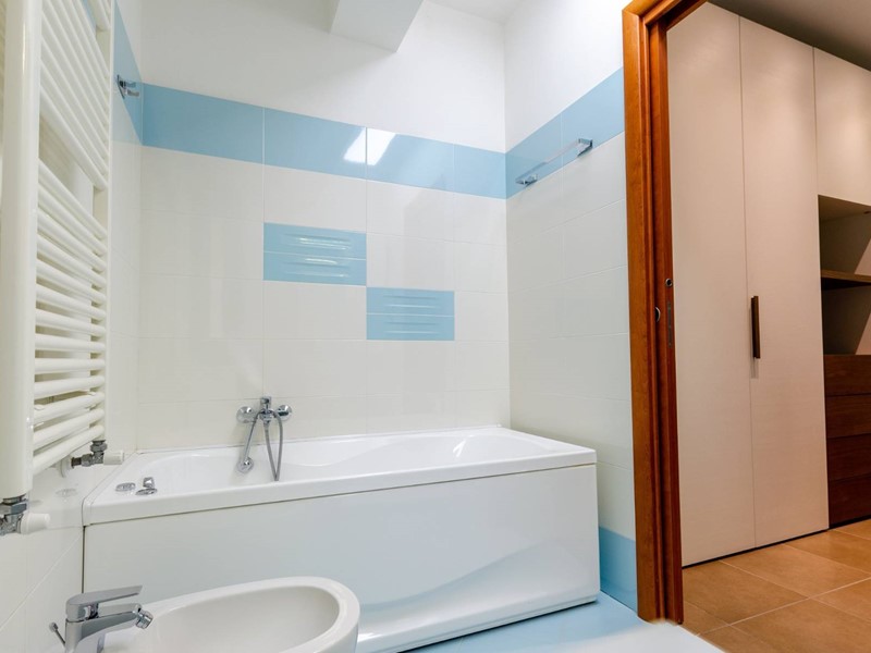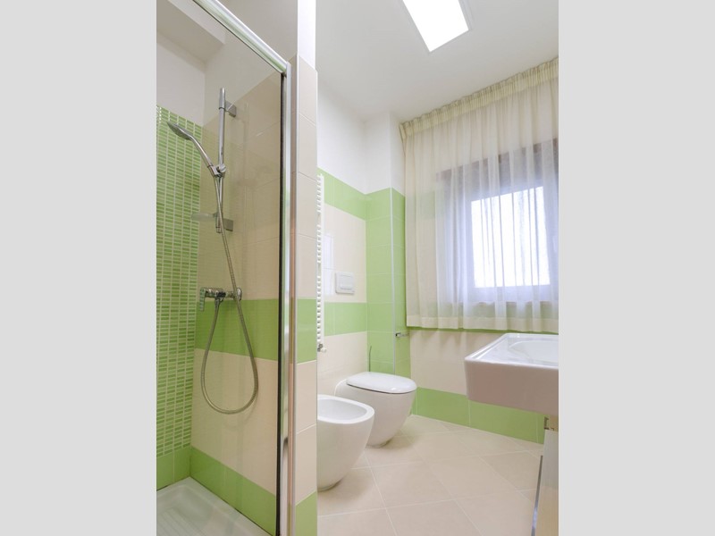 La soluzione si compone di ampia e luminosa zona giorno con cucina a vista, due camere e due bagni con doccia, il tutto servito da due comodi balconi.
