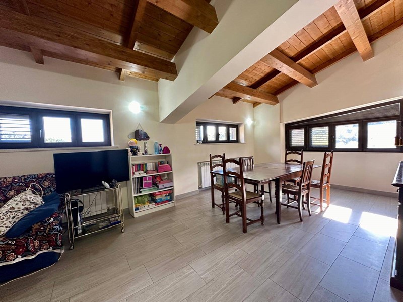 Una comoda scala ci conduce al secondo appartamento dove veniamo accolti da soggiorno open space con cucina a vista servita da terrazzo di 20 mq ca., tre camere e bagno.