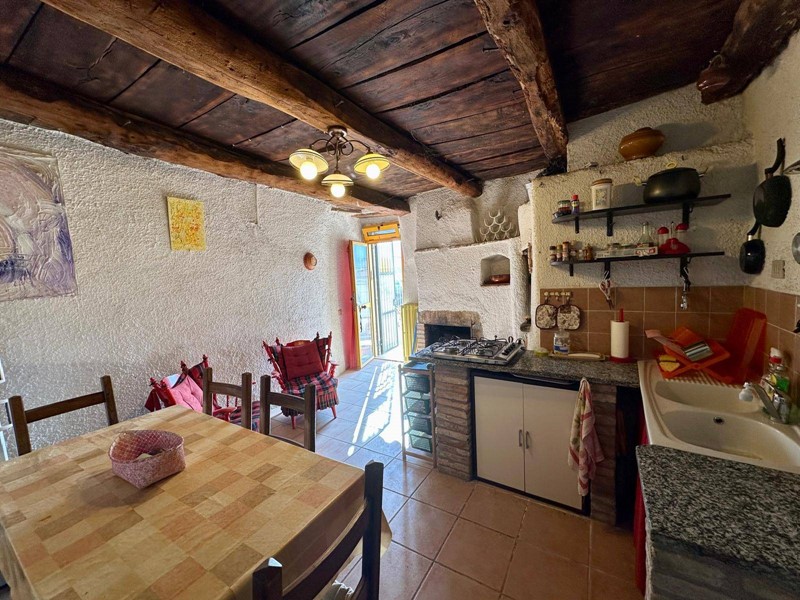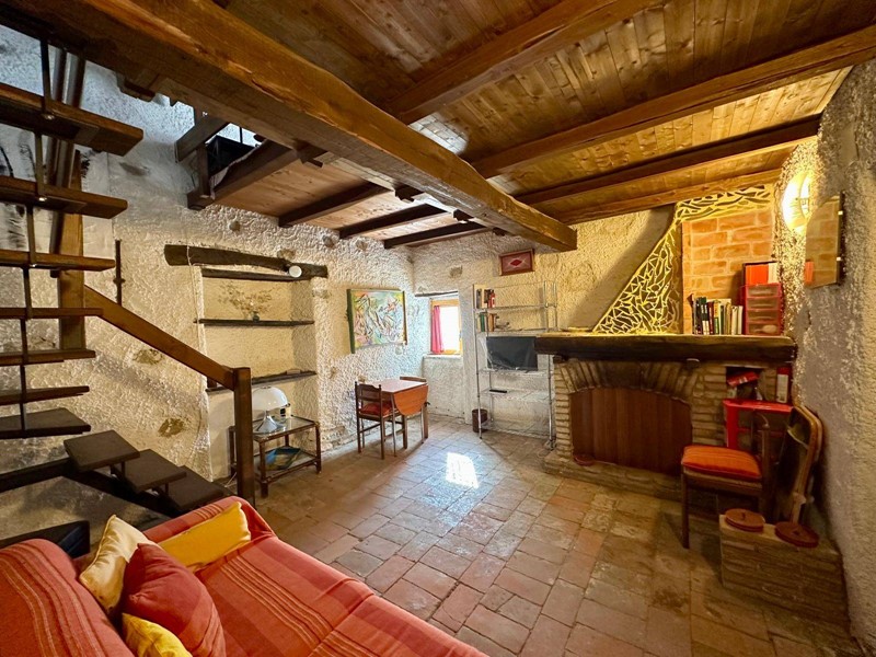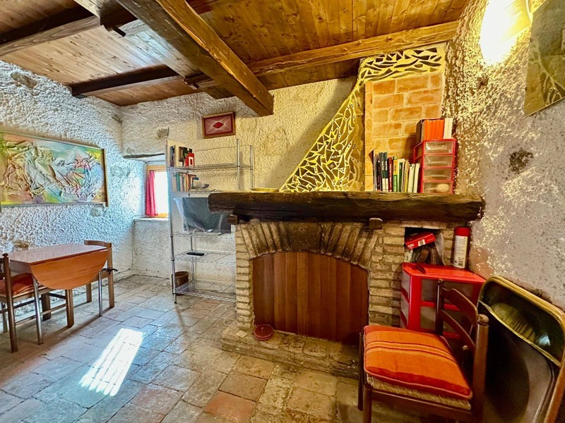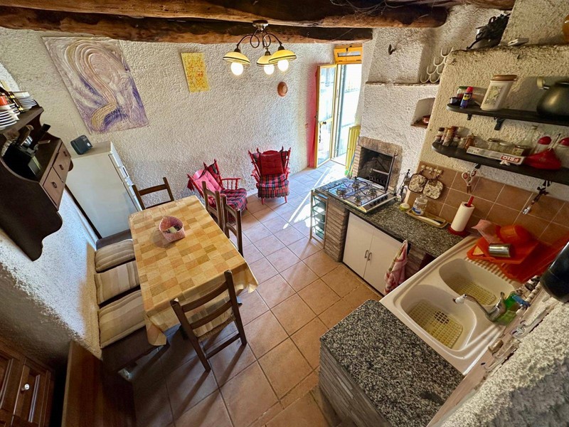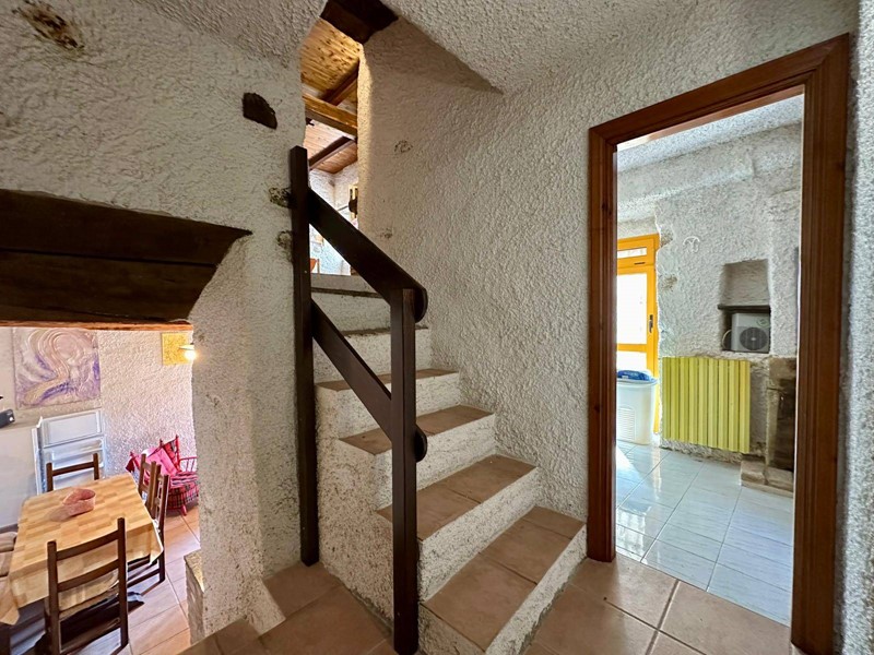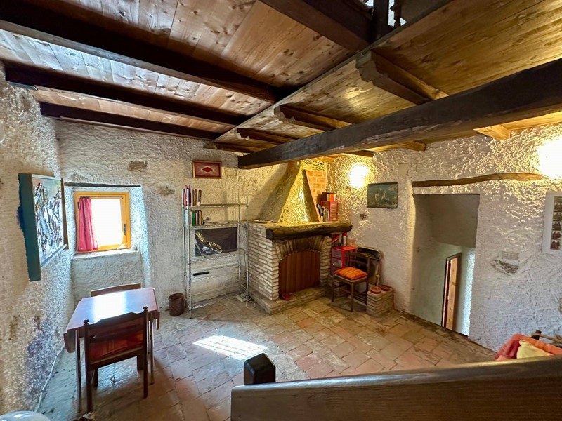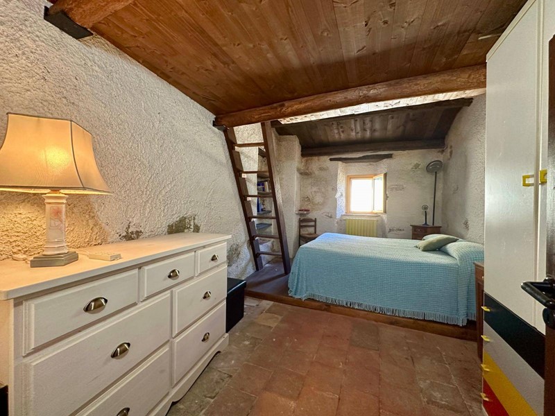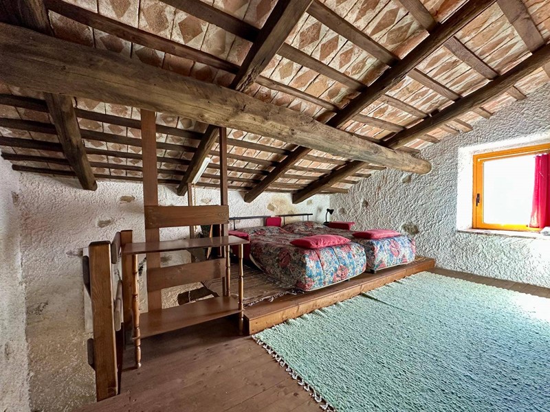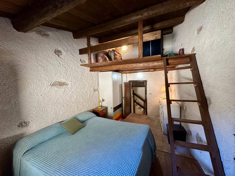 Al piano terra troviamo una cucina abitabile con forno a legna originale e camino, servita da terrazzo, salendo 4 gradini troviamo un disimpegno dal quale accediamo alla camera matrimoniale con soppalco e bagno con camino servito da terrazzino.