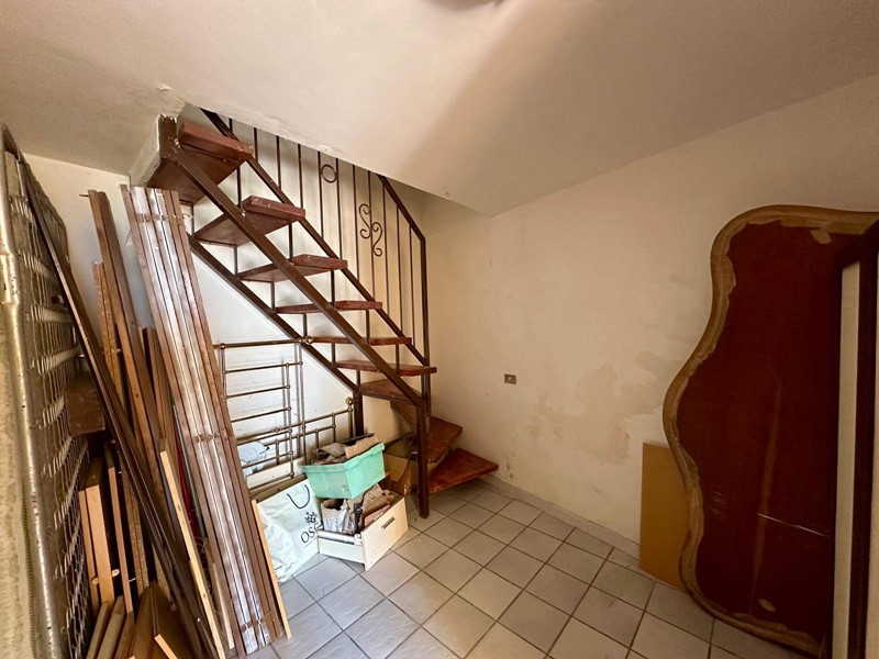Una scala in legno ci conduce alla taverna con camino ingresso su strada, composta da disimpegno e bagno.