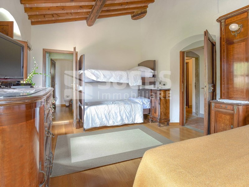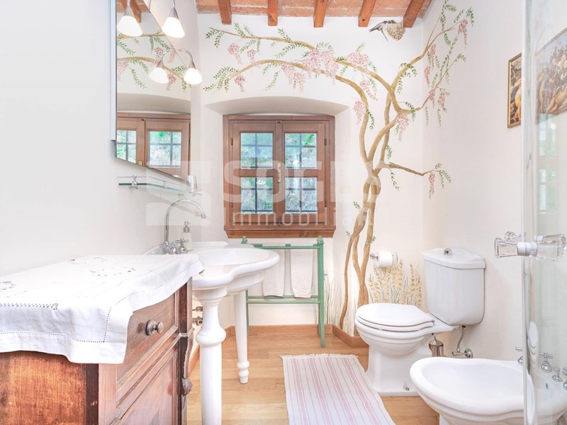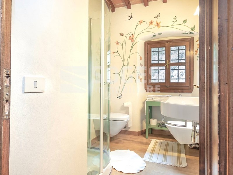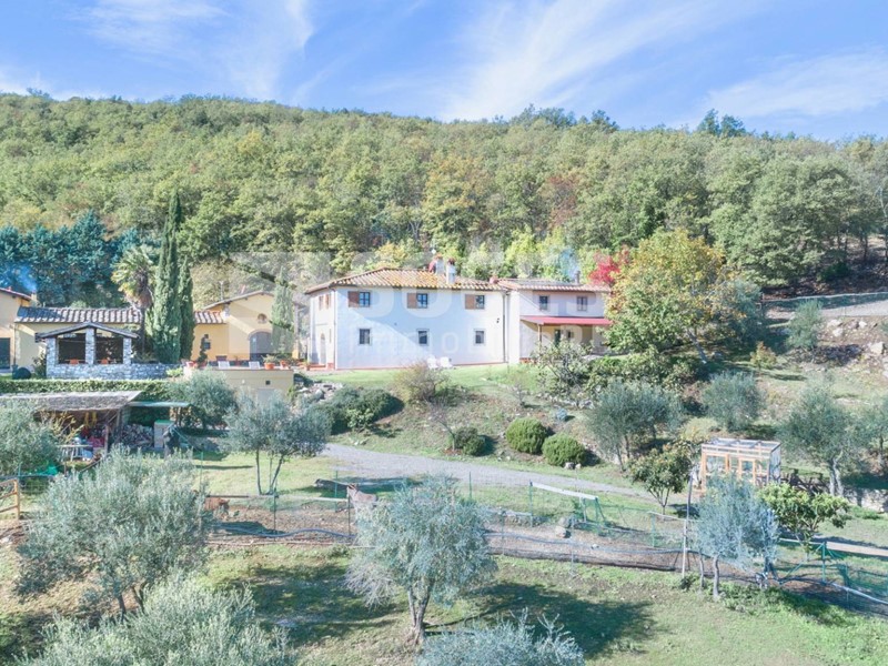 A circa 10 minuti dal centro di Bagno a Ripoli, in posizione dominante con fantastico panorama sulla vallata ed attualmente operativa anche struttura ricettiva. Complesso immobiliare, composto da villa di inizio '700 e relativo ex fienile, completamente ristrutturati ed ampliati in bioedilizia, dotati di acqua di pozzo e di sorgente, tettoia per il ricovero di 6 auto con 20 kw di pannelli fotovoltaici, oltre al solare termico, circa 1 ettaro e mezzo di terreno di cui oltre 2.000 mq come giardino, panoramico e con bel loggiato per le cene. La villa, di quasi 400 mq complessivi è composta da sette vani al piano terra, oltre due servizi e due loggiati, mentre al piano primo troviamo sei camere e cinque bagni. Il fienile, facilmente divisibile in quanto già predisposte due cucine, si compone al piano terra di 6 vani e due servizi, mentre al piano primo ha due zone notte separate, una delle quali composta da due camere e bagno e l'altra da una camera e bagno. Ottime condizioni sia interne che esterne, riscaldamento sia a gas che con pompe di calore, data l'ampia disponibilità di fotovoltaico. Progetto approvato per annesso agricolo di 25 mq coperti più portico di 15 mq, con oneri urbanistici già pagati. Sede di Pontassieve 055.8316480 - Rif. 46747