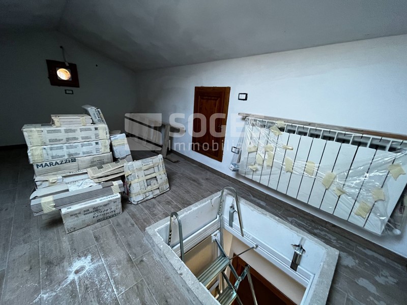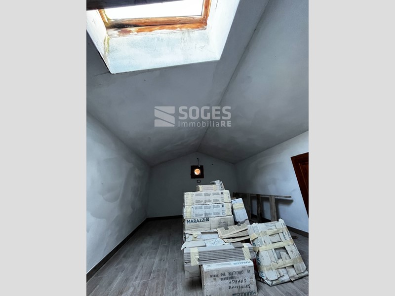 Tramite scala interna, saliamo al piano superiore dove troviamo: camera da letto matrimoniale, camera singola con terrazzo, bagno e botola per accedere alla parte di sottotetto.