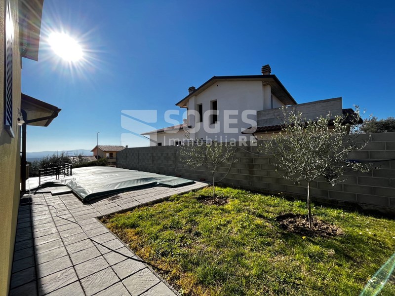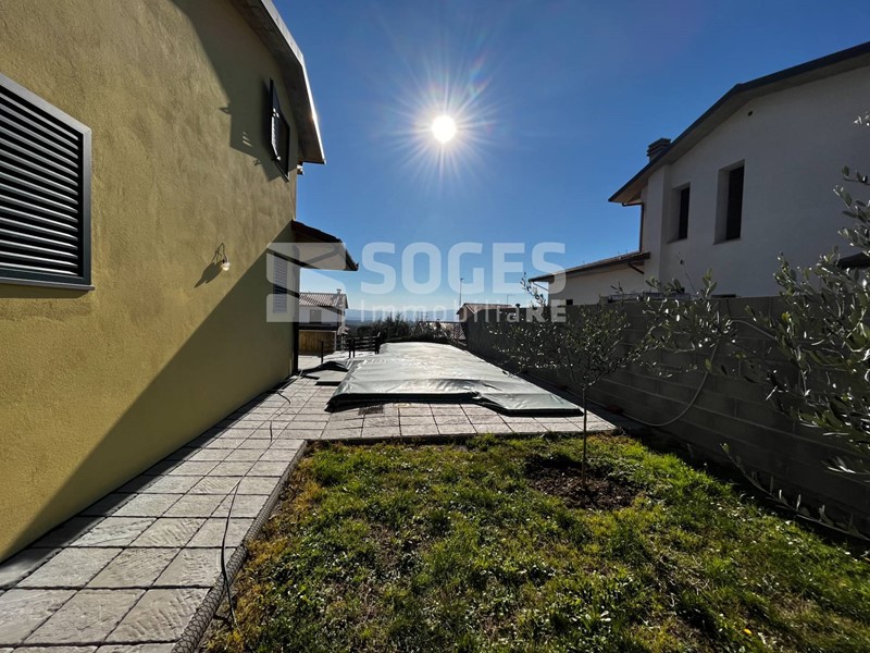 Su due lati della casa, troviamo il giardino di proprietà, dove è presente anche una piscina di circa 25mq con il rispettivo locale tecnico.