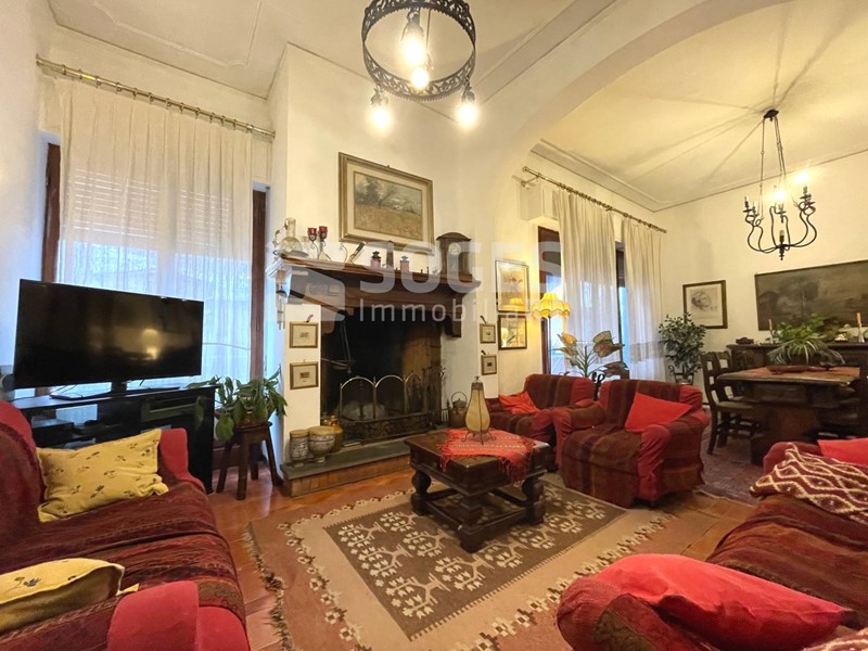 Zona semicentrale del paese, vicina alle scuole ed alla Coop, con facilità di parcheggio. Villetta libera su 4 lati di complessivi 210 mq, oltre garage di 25 mq collegato internamente e 210 mq di spazio esterno fra giardino, loggia e terrazzo. Si compone al piano terreno da appartamento di 135 mq, composto da ingresso, bellissimo salone doppio con camino, cucina abitabile, tre camere, servizio e ripostiglio. Dal salone si accede ad un piacevole loggiato di 15 mq e da questo alla terrazza di 50 mq, raggiungibile anche dalla cucina. Mediante scala interna, l'appartamento è collegato ad una taverna di 75 mq, attualmente adibita ad appartamentino di appoggio, dotato anche di ingresso indipendente e composto di tre locali, servizio e ripostiglio: Dalla taverna si accede anche direttamente al garage di 25 mq. L'immobile è in buone condizioni ed attualmente abitato, libero entro pochi mesi da un preliminare. - Rif. 47557. Per informazioni e visite chiamare 055.8316480