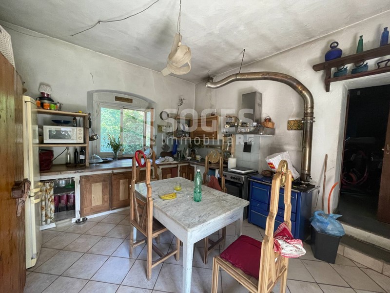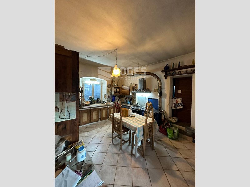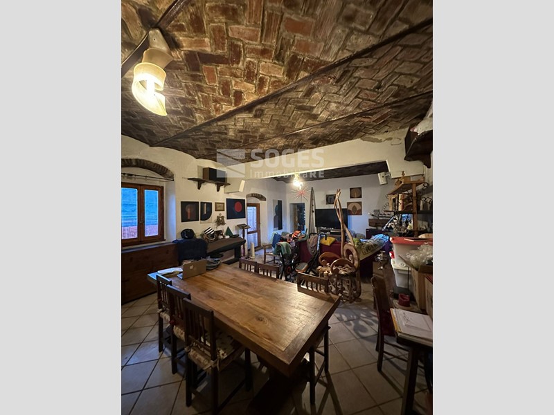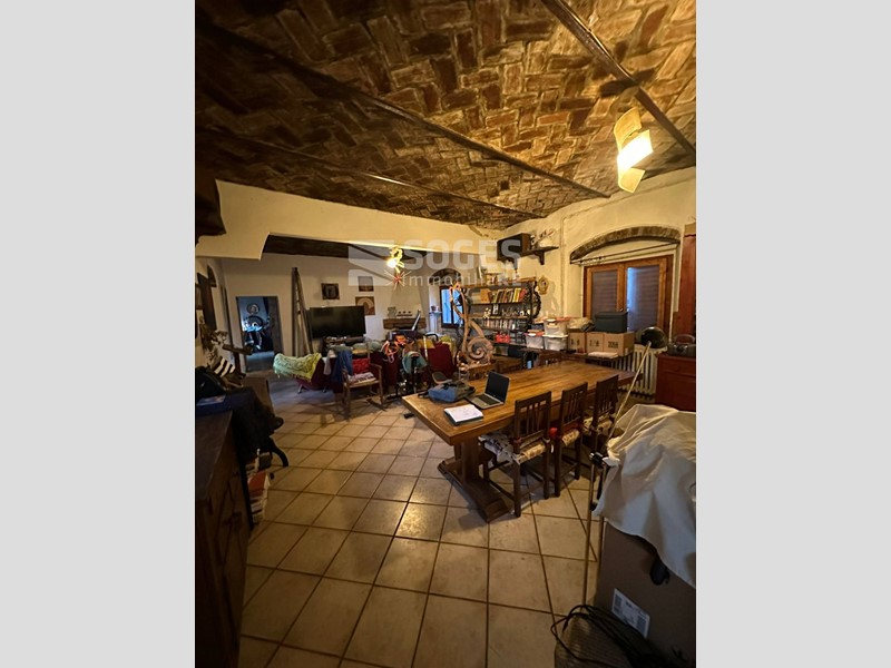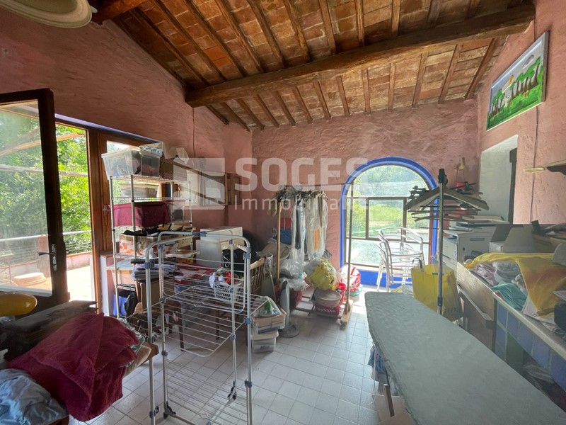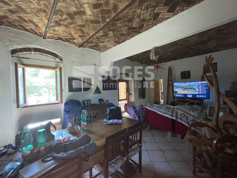 Il rustico é su due piani e si compone di ampio ingresso, salone con volte a botte di 40 mq. grande cucina arredata struttura fissa realizzata dal falegname su misura in legno massello e che rimarrà, compresa nel prezzo di vendita, studio e bagno finestrato con vasca. Loggia chiusa con ripostiglio sotto scala e piccolo locale lavanderia. Cantina nel seminterrato. Sempre al piano terreno, lato nord, in esterno al coperto zona barbecue con possibilità di mettere lungo tavolo e panche. Il classico e pregiato grande forno a legna stile toscano, in muratura, struttura rimasta in originale della ex casa contadina in questo spazio arricchisce il complesso. Tornando all' interno, la scala originale in pietra serena collega il piano terra al piano superiore dove ci sono quattro camere e due bagni finestrati con doccia, Cucina/lavanderia, terrazza di circa 15 mq. con vista sulle balze di creta, caratteristica naturale della zona dove nel periodo preistorico vi era un grande lago. Nel 2022 é stata realizzata una grande valorizzazione dell' immobile utilizzando i benefici del sisma bonus (dal valore economico di 94.000,00 euro) che ha previsto la messa in definitiva ed eterna sicurezza lala destra della casa. L annesso, ad uso magazzino, é di circa 95 mq. Al di sotto di trovano il locale tecnico di depurazione acqua del pozzo e la legnaia. Il tutto é contornato da prato, bosco e frutteto per circa 2 ettari. Dal 2017 sono attivi pannelli fotovoltaici che producono dai 2000 ai 2800 kw, ciò permette un buon equilibrio di spesa energetica per la maggior parte dell' anno.