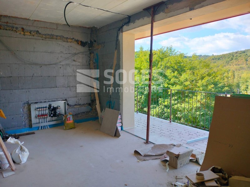 Sant'Ellero, in complesso di villette di nuova costruzione in classe A, vendesi appartamento posto su due livelli, al piano primo e secondo mansardato, per una metratura complessiva di 90 mq, con terrazzo di 10 mq, oltre garage di 25 mq al piano terra ed ulteriore vialetto esclusivo per posto auto esterno. Dotato di ingresso indipendente, si compone al piano primo da soggiorno con angolo cottura, camera, bagno e terrazzo, mentre al piano superiore abbiamo un ampia mansarda con lucernario in cui realizzare un'altra camera ed un possibile servizio. L'appartamento è attualmente in stato di ultimazione lavori (come visibile da foto). Realizzato con elevati standard di fabbricazione ed efficientamento energetico come cappotto isolante, pannelli solari, pannelli fotovoltaici, caldaia a pompa di calore, riscaldamento a pavimento. L'appartamento sarà inoltre dotato di predisposizione per climatizzazione, ed ogni stanza, predisposta per il recupero del calore di scambio (VMC). Possibilità di personalizzazione delle rifiniture come da capitolato. Classe energetica A. - Rif. 47945 - Per Info e visite 055.19936720