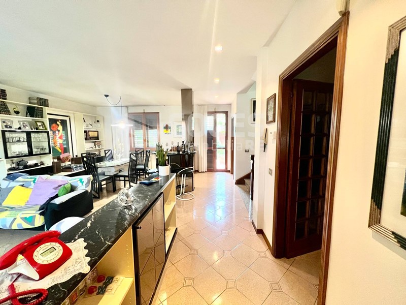 L'immobile, di circa 230 MQ (6 Vani), è così composto: Al piano terreno abbiamo un bellissimo giardino frontale, che ci conduce all'ingresso, dove troviamo poi una spaziosa e luminosa zona giorno doppia, cucina abitabile, una camera da letto, ed un servizio finestrato con box doccia. Tramite la zona giorno abbiamo accesso anche al giardino retrostante.