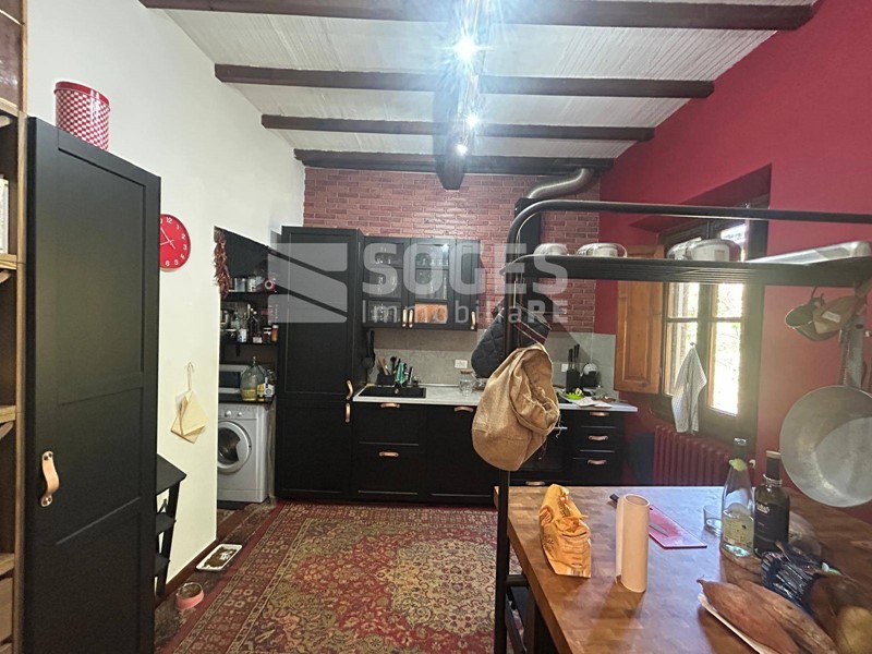 NOSTRA ESCLUSIVA - Dicomano 4 km, in posizione tranquilla e nel verde ma a pochi minuti dal paese, porzione di colonica di 100 mq al piano terreno con con ingresso indipendente, composta da ampio soggiorno con caminetto, cucina, bagno, tre camere, oltre soffitta praticabile di ulteriori 90 mq circa al primo piano; circa 500 mq di giardino vicino a casa e terreno boschivo di circa 3000 mq. poco più distante. Ambiente in ottime condizioni, abitabile da subito. Classe energetica E - ipe 132,95 kWh/mq annuo. - Rif. 48364