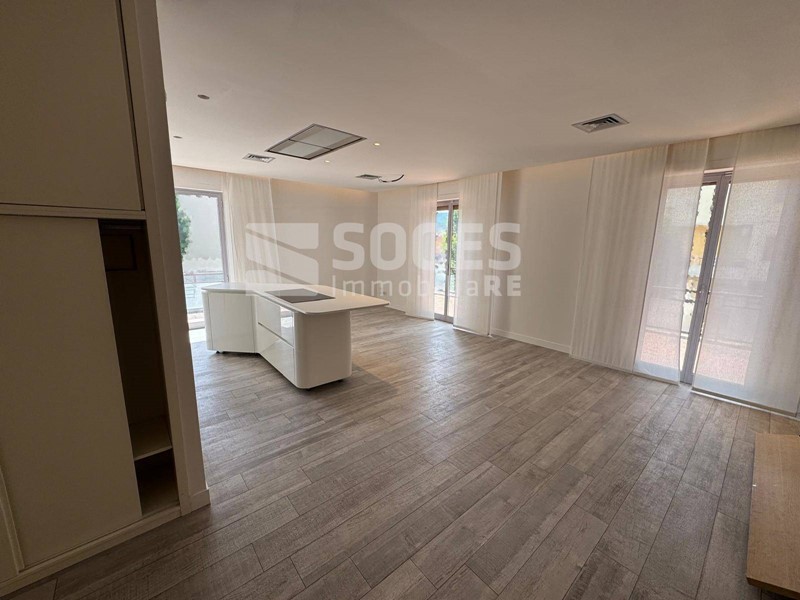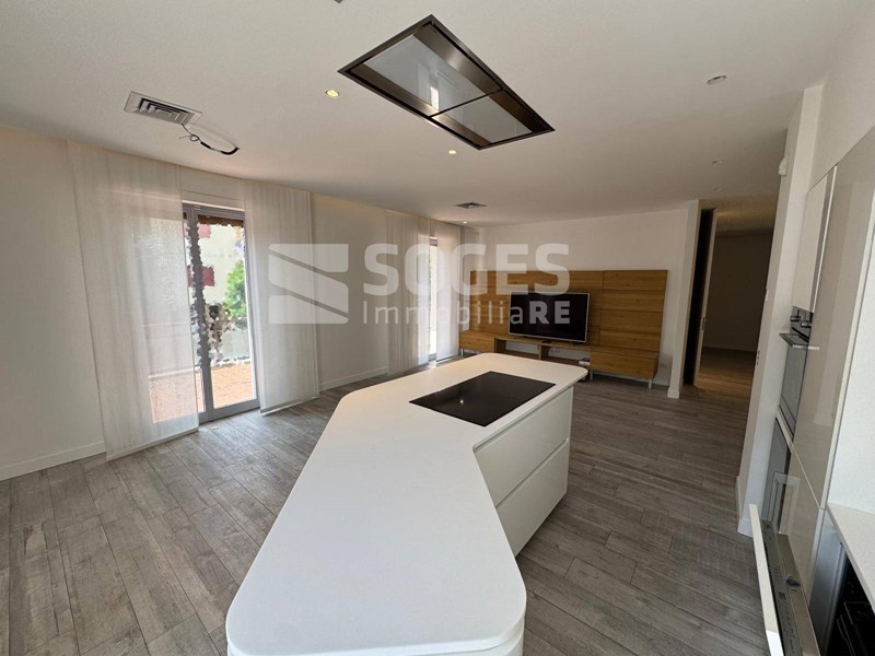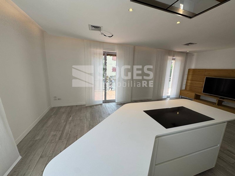 Splendido appartamento finemente ristrutturato, situato al piano primo di un piccolo condominio e dotato di garage privato. L'abitazione vanta un design moderno e accattivante, con un ampio ingresso che conduce alla spaziosa zona giorno, completa di una cucina di design con isola e piano cottura a induzione. Da qui si accede ad una spaziosa terrazza abitabile, ideale per godersi momenti di relax all'aria aperta, e a un'altra piccola terrazzina.