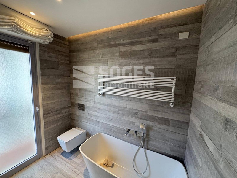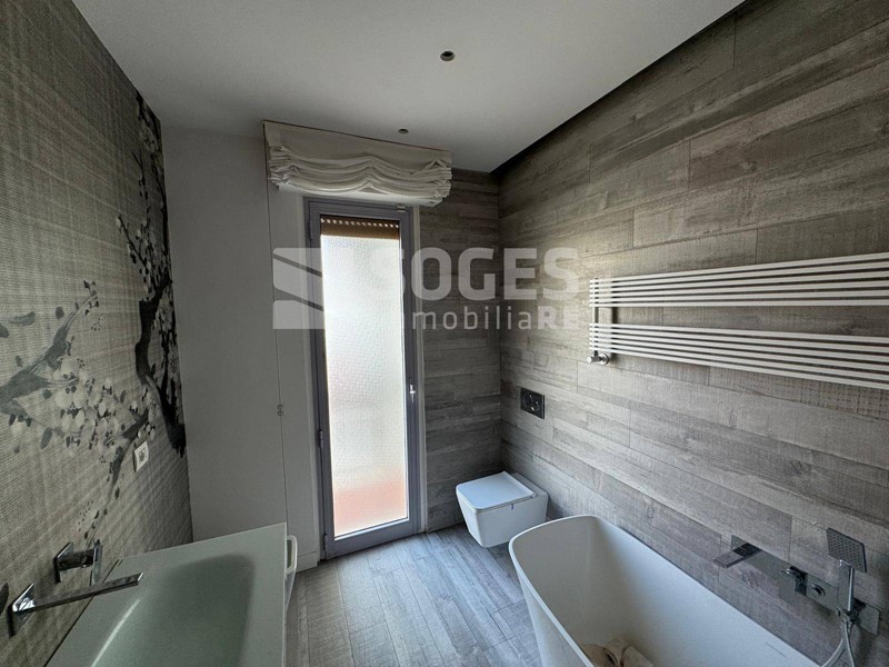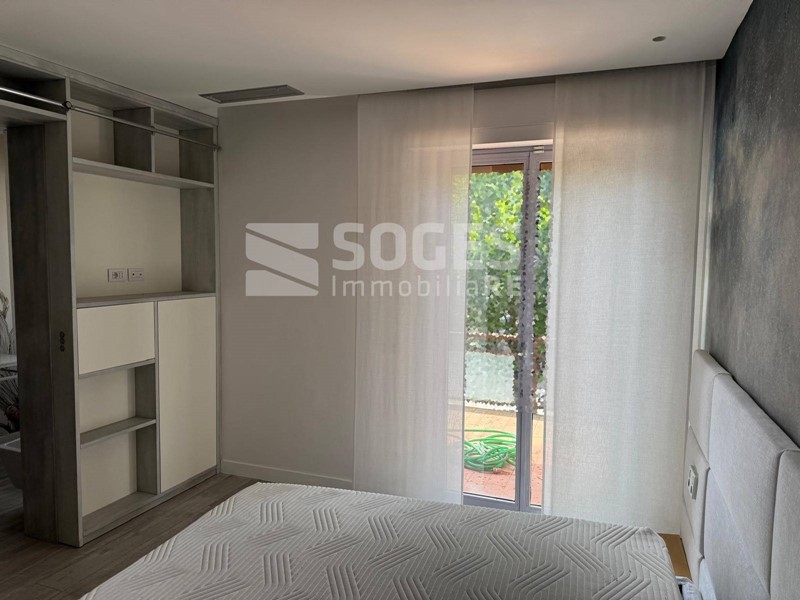 Il reparto notte offre una prima camera da letto con bagno privato, cabina armadio e accesso diretto alla terrazza, seguita da una seconda camera da letto, anch'essa con bagno privato e guardaroba, e dotata di piccola terrazza. Inoltre, è presente un terzo bagno di servizio nel corridoio. L'immobile vanta finiture di alto livello e offre comfort moderni grazie alla presenza di sistemi domotici.