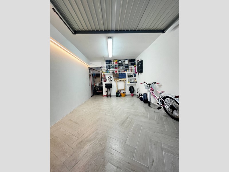 Al piano seminterrato, troviamo invece il garage di proprietà ed un posto auto all'interno del piazzale condominiale.
