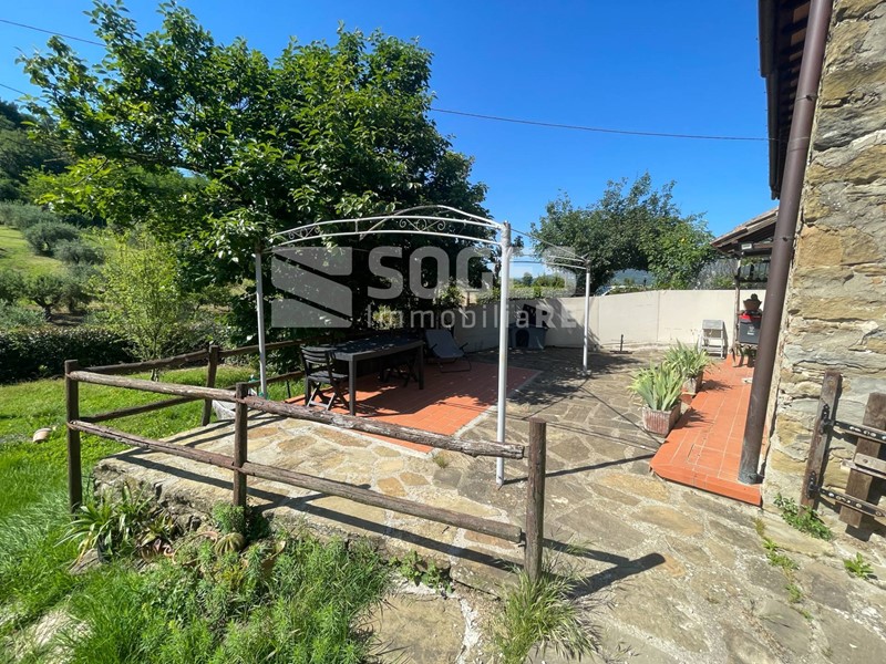 Nell'immediata campagna di Rufina, ad 1 km dal centro del paese e con accesso da strada di campagna ma tutta asfaltata, affascinante terratetto in pietra facente parte di piccolo borghettino, con 3000 mq di bellissimo giardino su tre lati, con un terrazzo comodo per mangiare all'aperto nel lato vicino a casa, poi prevalentemente pianeggiante e con ulivi ed alberi da frutto andando verso il lato di accesso alla proprietà, protetto da cancello automatico e tutto recintato. Internamente si compone al piano terra da soggiorno con angolo cottura e bagno molto grande, oltre a cantina finestrata adiacente al bagno ma con accesso dal giardino; al piano primo da due camere matrimoniali ed un bagno di servizio. Buone condizioni con interni in pietra, riscaldamento con stufe a legna. Libero subito. Per info Agenzia di Pontassieve 055.8316480, rif. 48476.