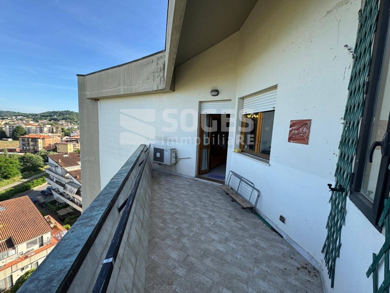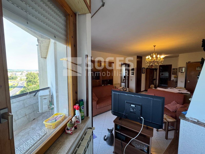 FIGLINE VALDARNO - NOSTRA ESCLUSIVA - Luminoso appartamento posto all'ultimo piano di un palazzo con doppio ascensore. L'abitazione è composta da ingresso in ampio soggiorno, con caminetto, dal quale si accede alla terrazza panoramica. Dal soggiorno si passa alla cucina abitabile, con piccolo balcone. Entrando nella zona notte, da disimpegno, troviamo due camere da letto matrimoniali e bagno finestrato, con box doccia. Annesso all'abitazione un garage posto al piano seminterrato del fabbricato, direttamente collegato da ascensore condominiale. Libero Subito.
